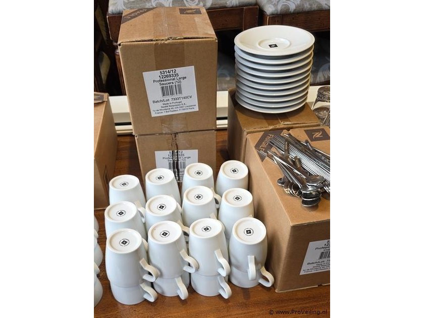 Nespresso kopjes, diverse modellen koffie- en theekopjes. Set totaal ca. 72 koffiekopjes en theeglazen ca. 11 stuks.