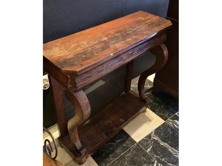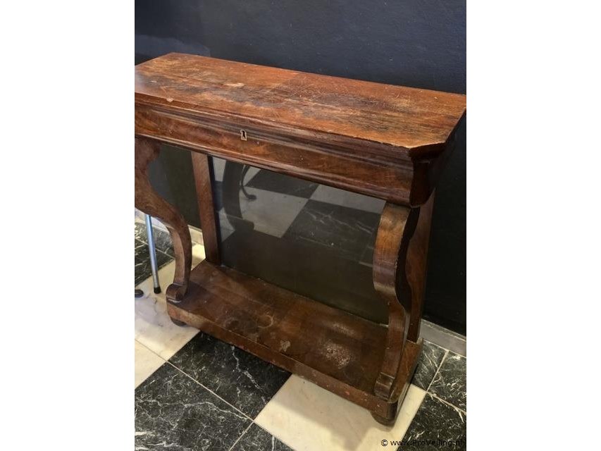 Kastje, antiek, mahoniehouten trumeau met lade, 19e eeuw, afmetingen lxbxh ca. 30x82x81cm; zie afbeeldingen..