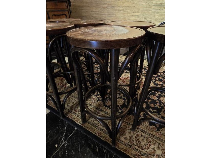 Barkrukken, hout, zithoogte ca. 69 cm, doorsnee kruk ca. 37cm, zie afbeeldingen; aantal ca. 7 stuks.