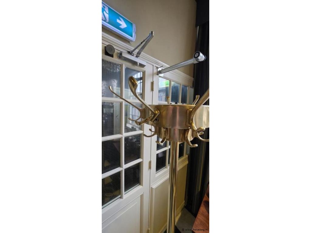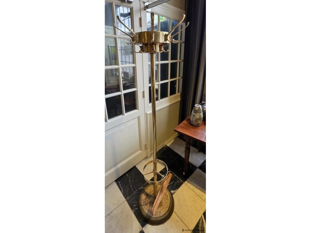 Messing, hoogte ca. 173cm, doorsnee ca. 50cm, 2x8 haken (1 zit los); zie afbeeldingen.