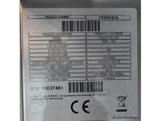 Gram premier f 70 l dr diepvrieskast