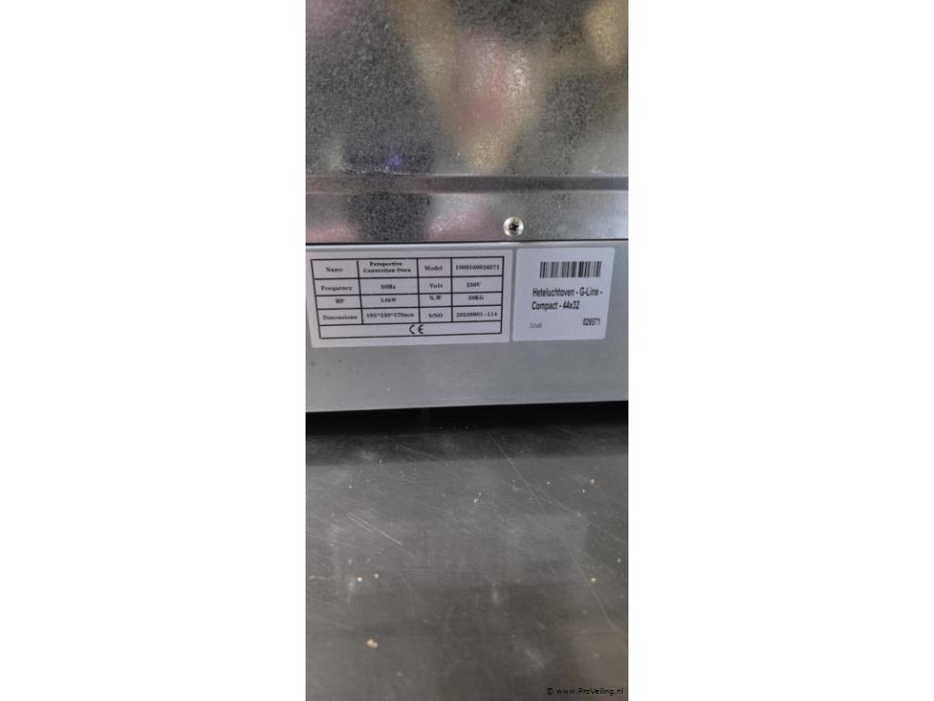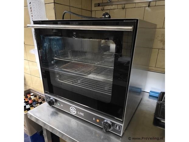 Oven, merk G-Line, hete lucht, compact, 44x32, afmetingen lxbxh ca. 60x53x57cm, 220V, zie afbeeldingen.