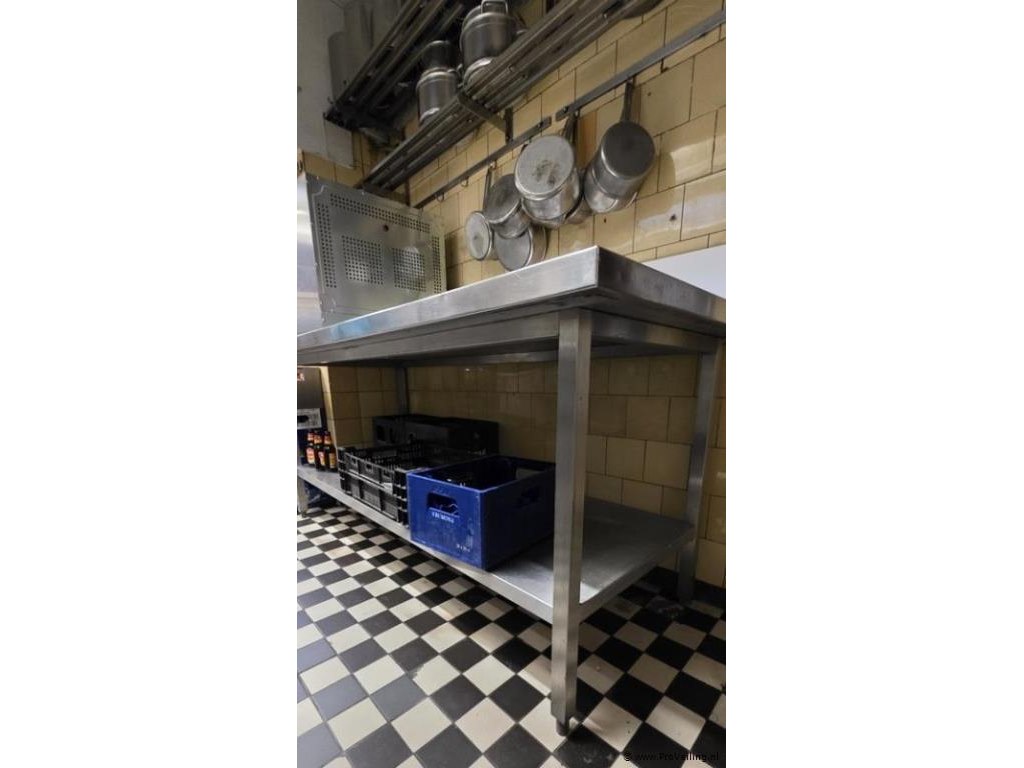 Werkbank, RVS, afmetingen lxbxh ca. 80x200x93cm; zie afbeeldingen.