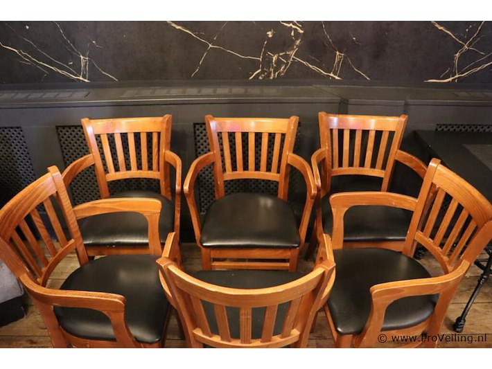 Eetkamerstoelen met armleuning, hout/leder bekleed - 6 stuks