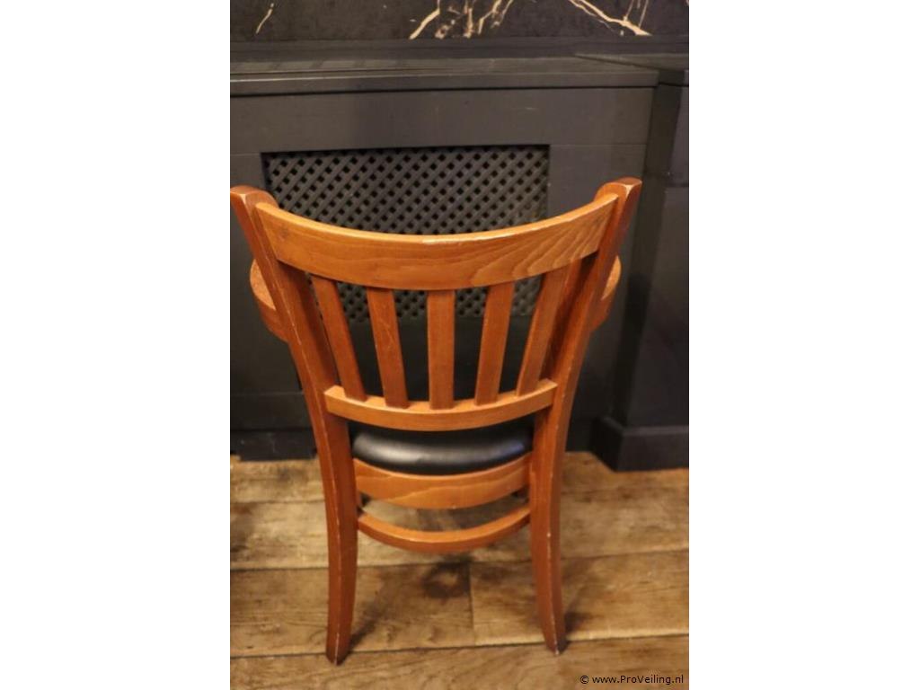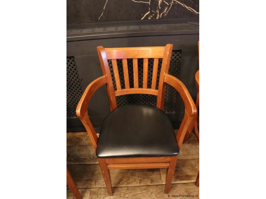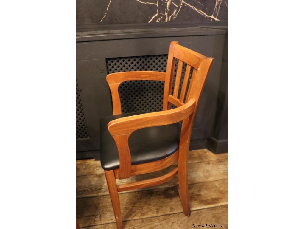 Eetkamerstoelen met armleuning; hout/leder bekleed; afmetingen ca. 43x51x85cm; zithoogte ca. 47cm; aantal 6 stuks; zie afbeeldingen.