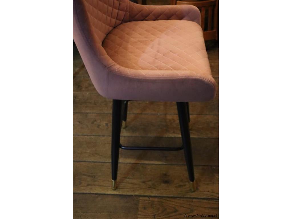 Barstoelen; kleur oud roze gestoffeerd; afmetingen ca. 50x51x109cm; aantal 2 stuks.