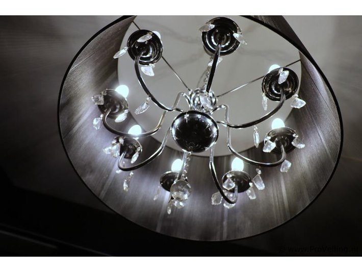 Kroonluchter met lampenkap; afmeting ca. Ø 64.5cm x 42cm (h); door koper zelf vakkundig te demonteren op aanwijzing van ProVeiling.