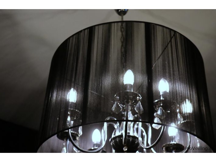 Kroonluchter met lampenkap; afmeting ca. Ø 64.5cm x 42cm (h); door koper zelf vakkundig te demonteren op aanwijzing van ProVeiling.