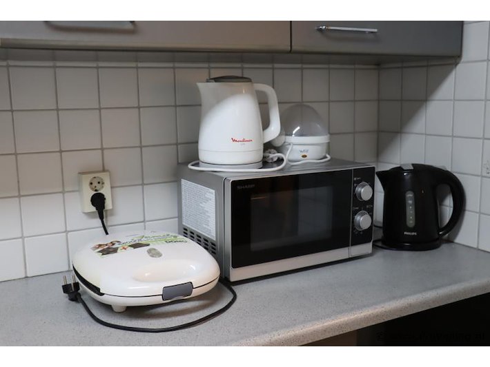 Partij diverse keukenbenodigdheden o.a. Sharp magnetron, Philips & Moulinex Uno waterkoker, Whatshome eierkoker & tostiapparaat; zie afbeeldingen.