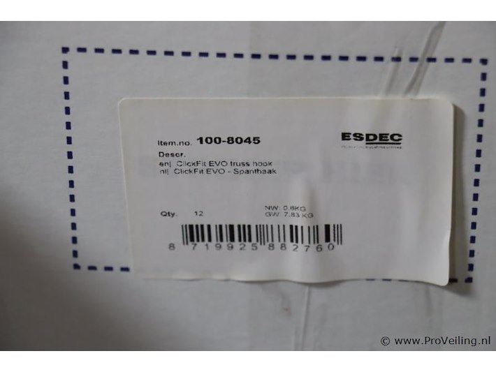 ESDEC ClickFit EVO Spanthaak 100-8045; aantal ca. 16 dozen á 12 stuks + 1 aangebroken doos; zie afbeeldingen.