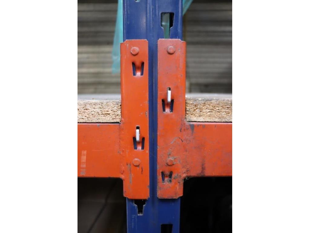 Bestaande uit 12x staanders; afmetingen ca. 80x475cm, dikte ca. 7x8cm; 60x liggers; afmetingen ca. 270x10cm, dikte ca. 5cm; incl. platen (zijn vastgeschroefd); totale breedte (gemonteerd) ca. 165cm; excl. inhoud. Door koper zelf vakkundig te demonteren op aanwijzing van ProVeiling.