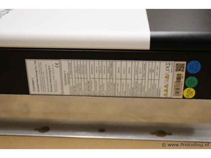 Growatt hybride omvormer SPH4000, 1-fase; nieuw in doos; winkelverkoopprijs ca. €835,-; zie afbeeldingen. Incl. Eastron SDM630MCT 3-fasige energiemeter; winkelverkoopprijs ca. €134,-; zie afbeeldingen. De Growatt hybride omvormer SPH4000 1-fase biedt de mogelijkheid een belangrijke stap richting de toekomst te zetten. De stroom die opgewekt wordt met de zonnepanelen, maar niet verbruikt wordt op het moment dat het wordt opgewekt (direct eigen verbruik) kun je terugleveren aan het net, maar je zou deze ook kunnen opslaan in een thuisbatterij! Zo kunnen we energie die op een zonnige dag is opgewekt in de avonduren gebruiken. Deze hybride omvormer van Growatt is in staat het elektriciteitsnet, de zonnepanelen en de batterij met elkaar te verbinden. Het mooie aan dit hybride omvormer systeem is dat de omvormer ook prima werkt zonder batterij.
