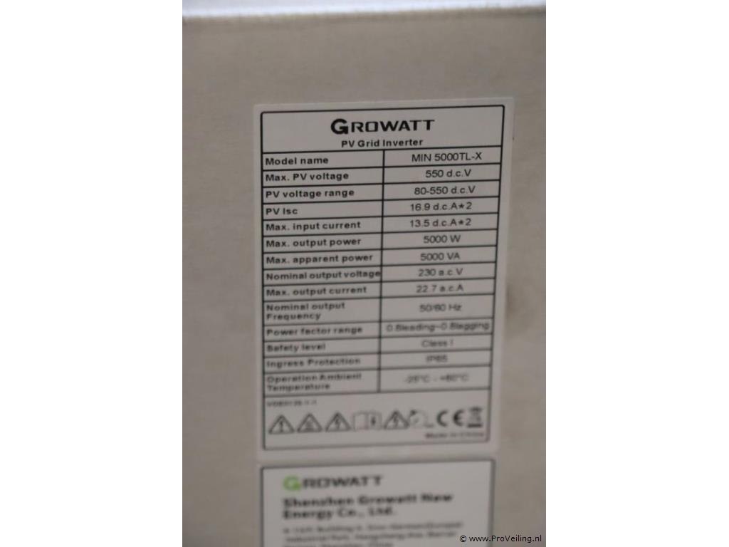 ; accessoires incompleet; nieuw in doos; winkelverkoopprijs ca. € 455,-. Deze Growatt MIN 5000 TL-X omvormer beschikt over 2 MPP Trackers. Dat betekent dat er 2 in serie geschakelde ‘strings’ aangesloten kunnen worden, die elkaar niet beïnvloeden bij bijvoorbeeld schaduwvorming. Ideaal als bijvoorbeeld de onderste helft van het dak pas later zon krijgt dan de bovenste helft, of als er bijvoorbeeld alleen op één helft van het dak schaduwvorming. U kunt op deze omvormer dus 2 strings aansluiten, van gezamenlijk maximaal 7000 wattpiek. En dat terwijl hij al opstart bij 100 Volt. De Growatt MIN serie heeft een nieuw uiterlijk en een touch toets met OLED display, én ondersteunt exportcontrole!