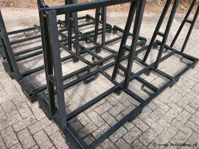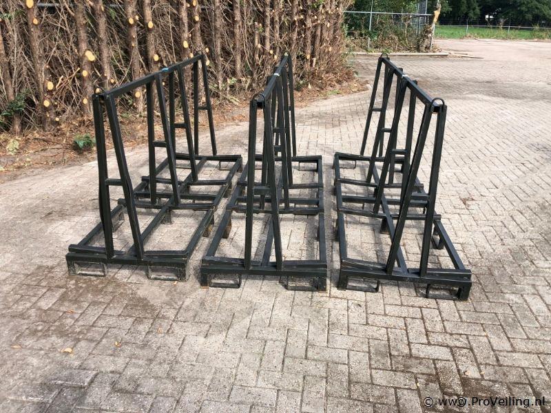 Glasbokken, staal; afmetingen ca. 220x65x100cm. Aantal 3 stuks.