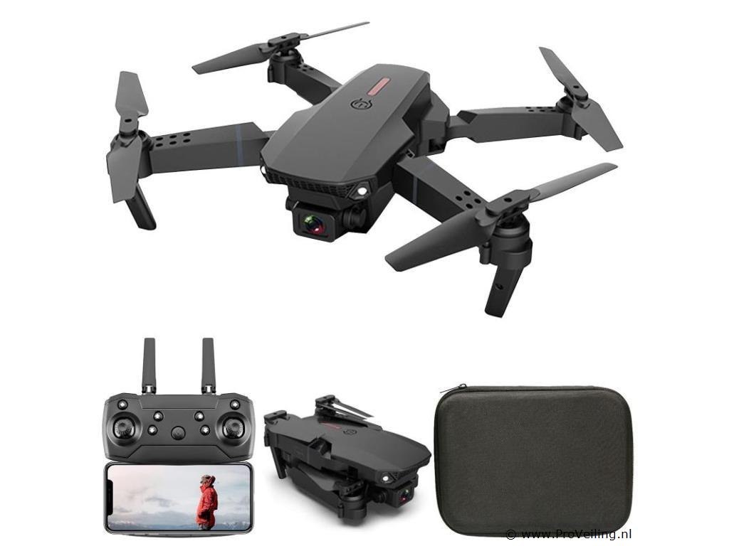 Drone met 4k camera & 3 batterijen - Zwart: Deze drone bevat naast de gebruikelijke onderdelen nog 2 extra batterijen dus in totaal 3 batterijen zodat je drone langer kan vliegen in totaal ongeveer 30 min. De drone heeft een 4k camera. De drone bestuur je met de bij geleverde afstandsbediening. Daarnaast kan je de drone ook besturen via je telefoon en mee kijken met de beelden die de ingebouwde camera ziet. De app is gratis te downloaden op elke mobiele telefoon Android en Apple. De pocket drone heeft een reikwijdte van 80 tot 100 meter. Deze drone wordt kant-en-klaar geleverd en is dus ready to fly voor zowel in- als outdoor vluchten De drone heeft opvouwbare armen waardoor hij slechts 12.5x7.5x5 cm groot is wanneer hij is opgevouwen. De drone weegt 250 gram. Inhoud etui: Drone met 4k camera, 3x batterij, oplaadkabel, afstandsbediening, beschermers voor de propellers.