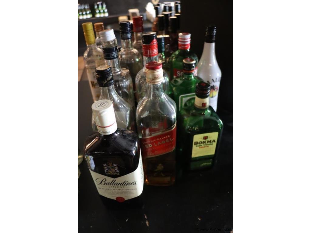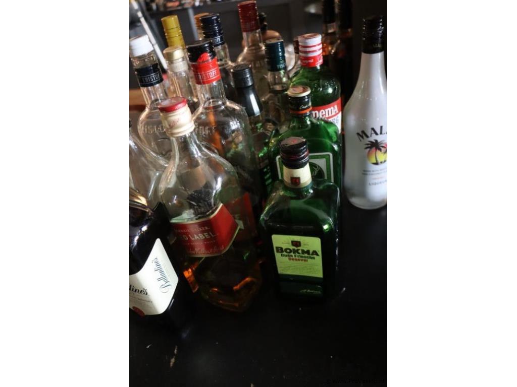 Partij sterke dranken (vol & aangebroken) o.a. Ballantine's Finest Blended Scotch whisky, Bokma jenever, Malibu, Vodka Club & Jack Daniels Whisky; zie afbeeldingen.