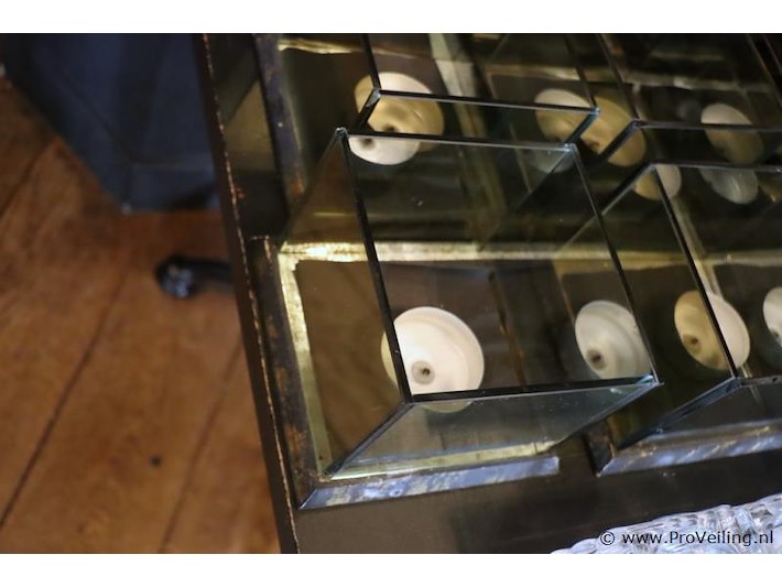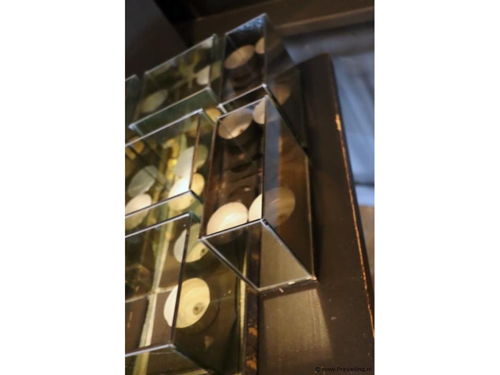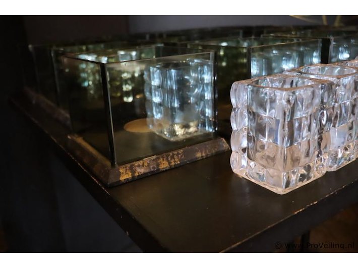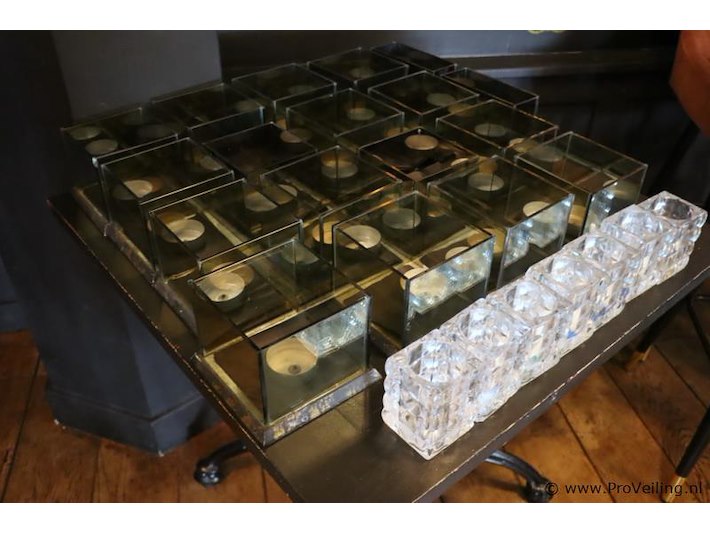 Partij theelichthouders; diverse afmetingen o.a. 14x14x12cm, 18x7x12cm & 7x7x10cm; zie afbeeldingen.