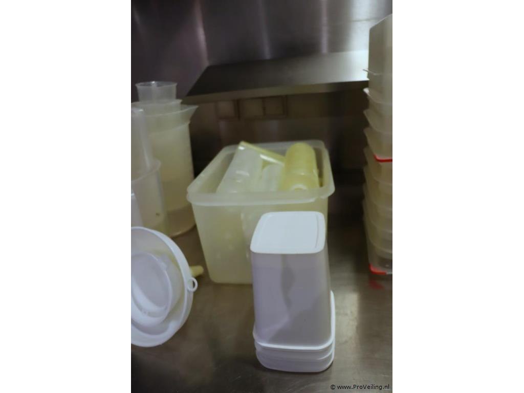 Partij diversen o.a. araven gn voorraadbakken & maatbekers