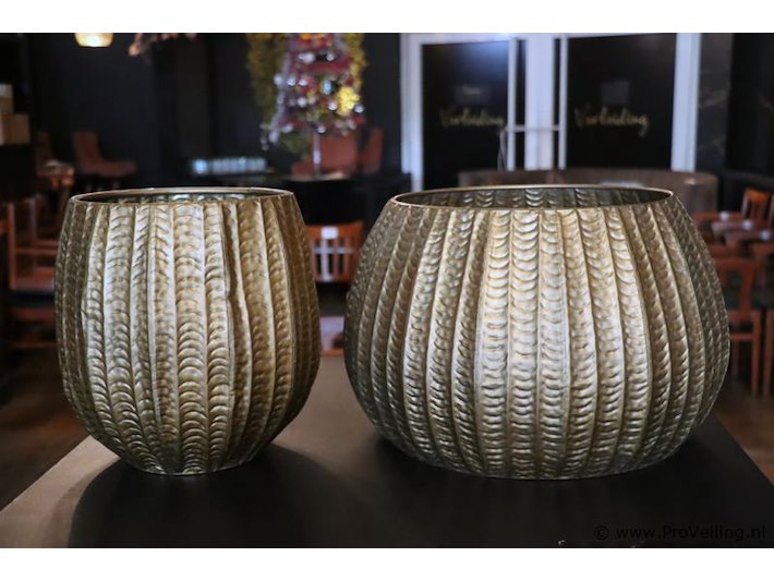 Decoratieve bloempotten; afmetingen ca. Ø 30cm x 30cm (h) & Ø 22cm x 26cm (h); zie afbeeldingen.