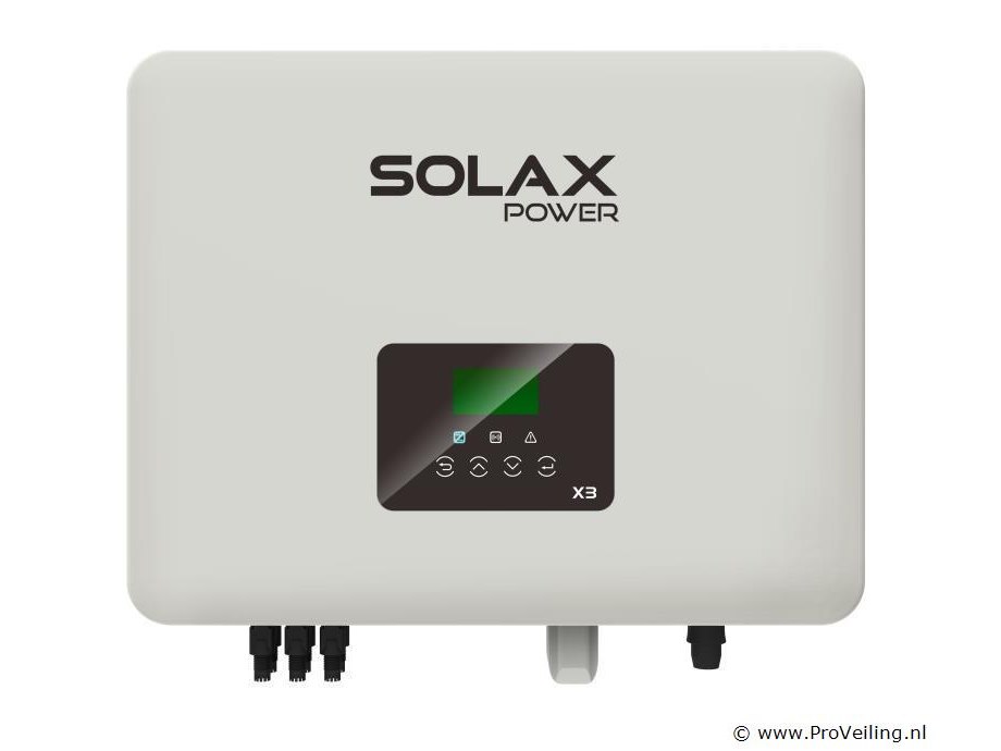 3-Fase omvormer van Solax samen met 30 zonnepanelen van 405 Wp All Black van CECEP Solar. De producten zijn nieuw en ongebruikt en hebben volledige fabrieksgarantie. Nieuwprijs omvormer EUR 900,=!