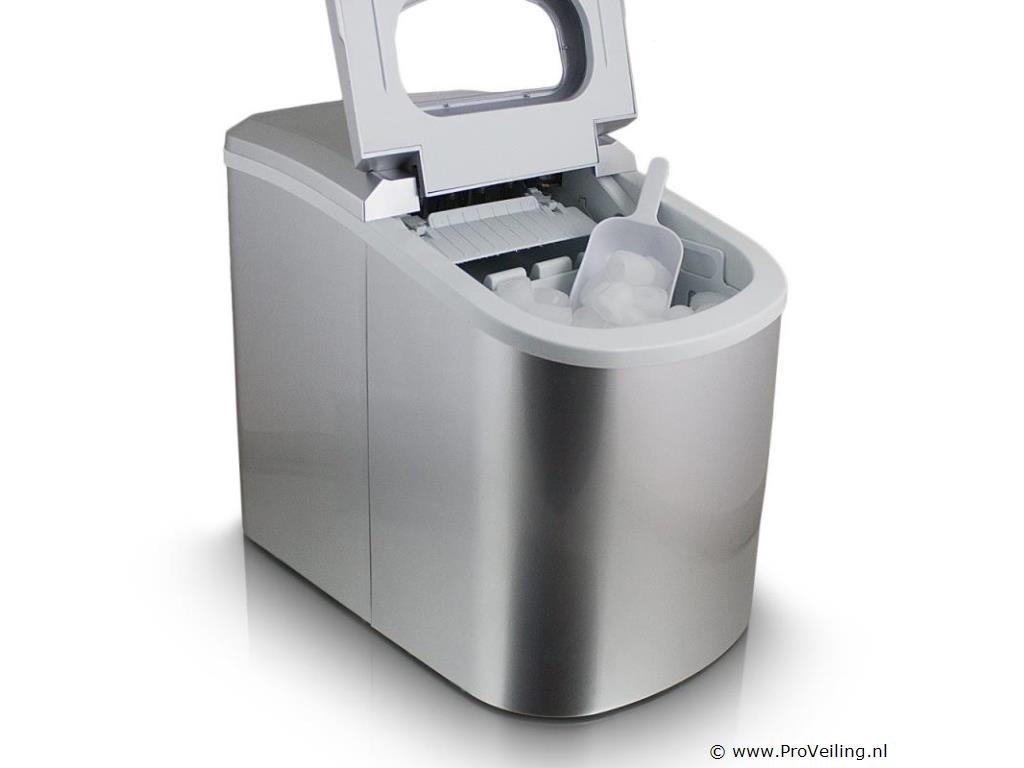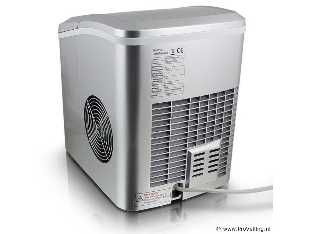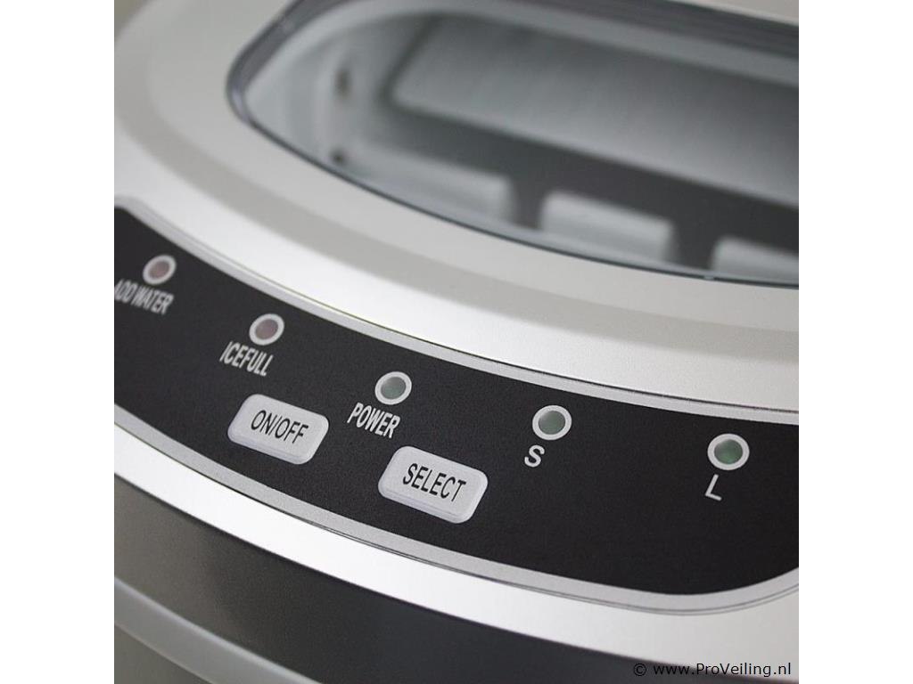 Info: gekoelde opslagbak voor ijsblokjes ca. 6-13 minuten voor een lading ijsblokjes IJs dagelijkse output 10-12kg 2 selecteerbare ijsblokjesmaten Indicatielampje en signaaltoon Hoogwaardig compressorgeluidsniveau (30db) GS getest Technische specificaties: Afmetingen: 350 mm x 250 mm x 325 mm (L/B/H) Watertank: 2,2 liter Gewicht: 7,85 kg Zilver Capaciteit: 0,8 kg ijs Dagelijkse productie: 10 - 12 kg ijs Vermogen: 220-240 volt 50Hz/120 watt Leveringsomvang: 1x ijsblokjesmachine 1x ijsblokjesschep 1x gebruiksaanwijzing