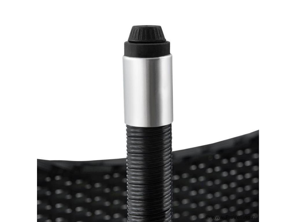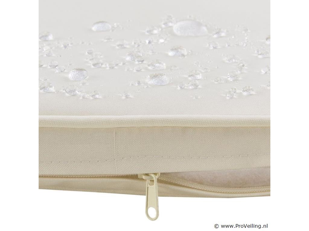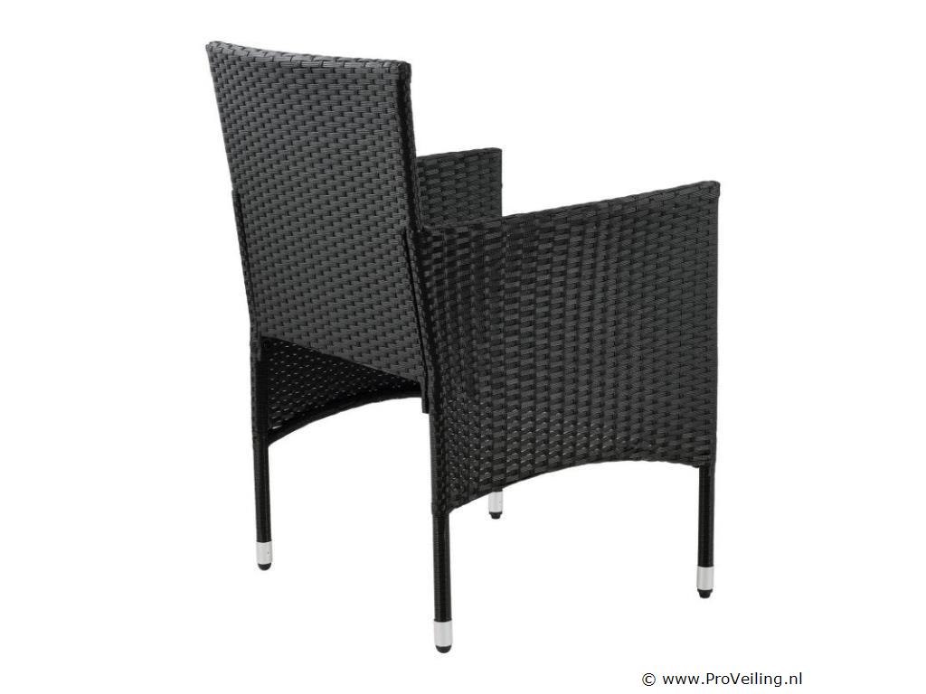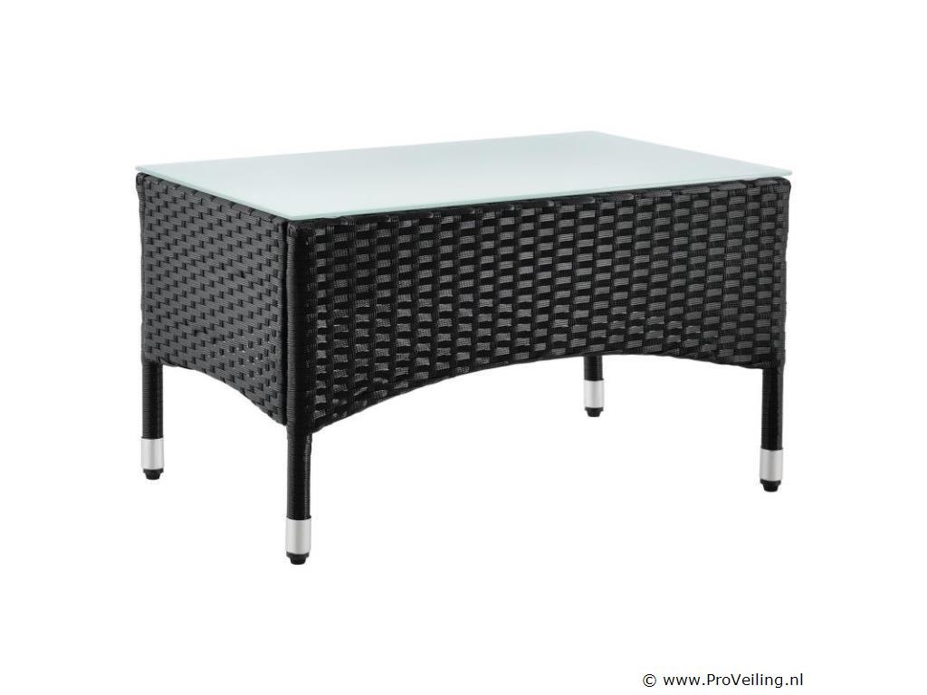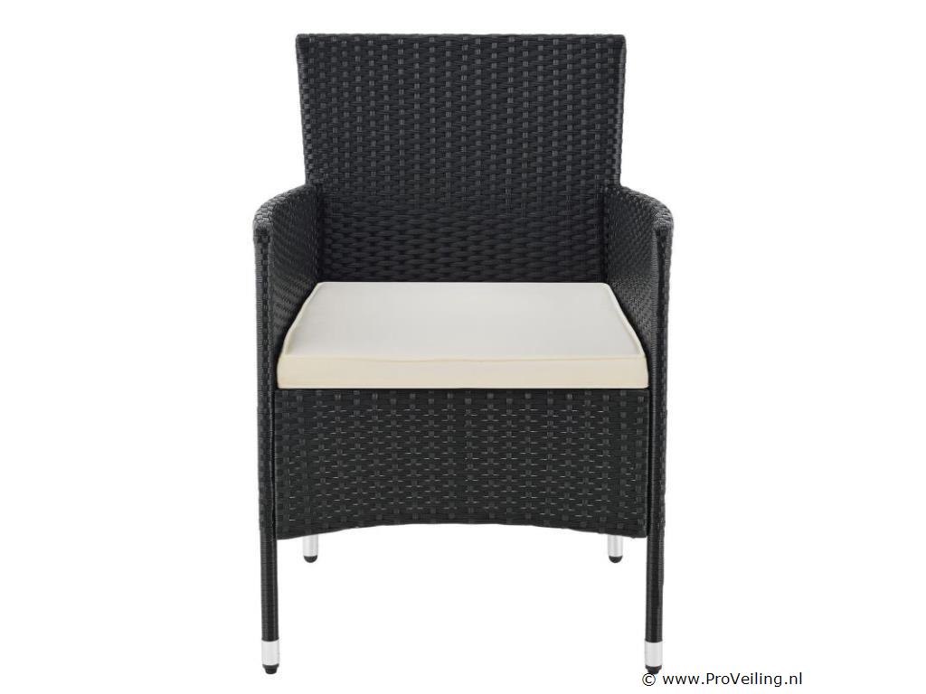 De poly rotan zitgroep Fort Myers (zwart met creme en witte hoezen) dient als comfortabele lounge voor 4 personen. Met de edele rotan-look verfraait hij elke tuin, terras of balkon. Uitgerust met een rugleuning en kussens, is de tuinset perfect om vele uren door te brengen met familie en vrienden. De 4-delige tuinmeubelset met een stevig metalen frame bestaat uit een 2-zitsbank, twee fauteuils en een kleine bijzettafel met glazen blad. De balkonset is geschikt om gasten in stijl te ontvangen. Zet drankjes en hapjes op tafel en geniet samen van de zomer. Technische specificaties: Materiaal frame: staal, gepoedercoat Materiaal weefsel: polyrotan, gevlochten Materiaal zitkussens: schuim Materiaal hoezen: polyester Materiaal glasplaat: glas (veiligheidsglas) Vlechtkleur: zwart Kleur omslag: cremewit Aantal zitplaatsen: Voor 4 personen Stijl, design: moderne rotan-look Afmetingen (ongeveer): Afmetingen tuintafel: 60 × 35 × 35 cm Afmeting bank: 95 × 52 × 85 cm Afmetingen tuinstoelen: 51 × 52 × 85 cm Hoogte rugleuning vanaf vloer: 85 cm Hoogte armleuning vanaf vloer: 61 cm Zithoogte zonder bekleding: 41 cm Dikte zitkussen: 5 cm Leveringsomvang: 1 x glazen tafel 2 x stoelen 1 x 2-zits zitbank 1 x groot zitkussen 2 x kleine zitkussens 1 x montagehandleiding