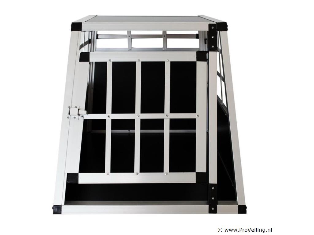 Voor het veilig vervoeren van kleine honden De rit naar de dierenarts of op vakantie wordt kinderspel voor jou en je trouwe viervoeter. Met de aluminium hondentransportbox M vervoer je kleine honden comfortabel en veilig. Plaats de doos in de kofferbak of maak hem vast op de achterbank van uw auto. De kleine pelsneuzen zullen zich dankzij de goede ventilatie meteen thuis voelen. Bovendien kunnen u en uw hond elkaar van alle kanten duidelijk zien, zodat u altijd zeker weet hoe uw huisdier zich voelt. Technische specificaties: Materiaal: Aluminium / MDF panelen Geschikt voor: puppies, kleine honden Beoogd gebruik: autoritten, vakanties, reizen Plaats van gebruik: kofferbak, achterbank Kleur: zwart/zilver Aantal deuren: 1 Afmetingen (ongeveer): Hoogte: 51 cm Vloeroppervlak: 54 × 69 cm Plafondpaneel: 45 × 45,5 cm Kantelhoek voorzijde: ongeveer 65 graden Kantelhoek achter: ongeveer 90 graden Advies: Controleer voor bestelling of de maatvoering goed is.