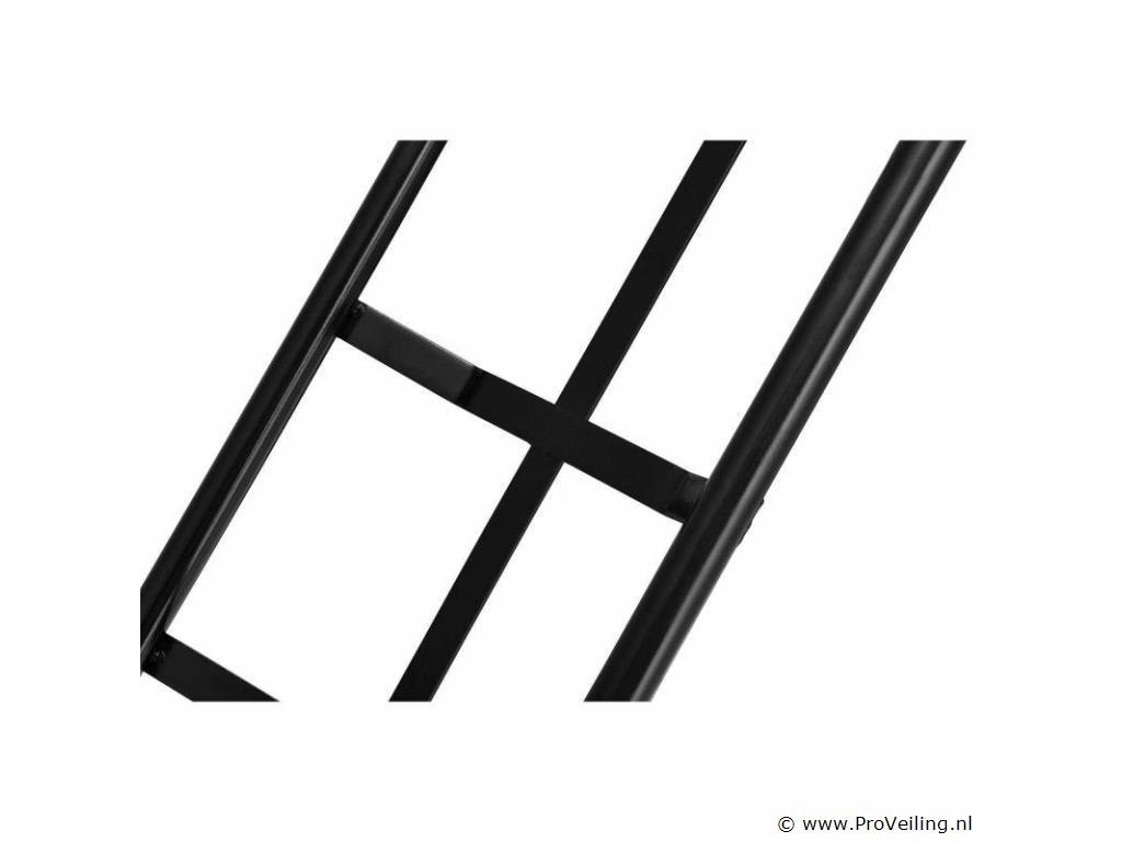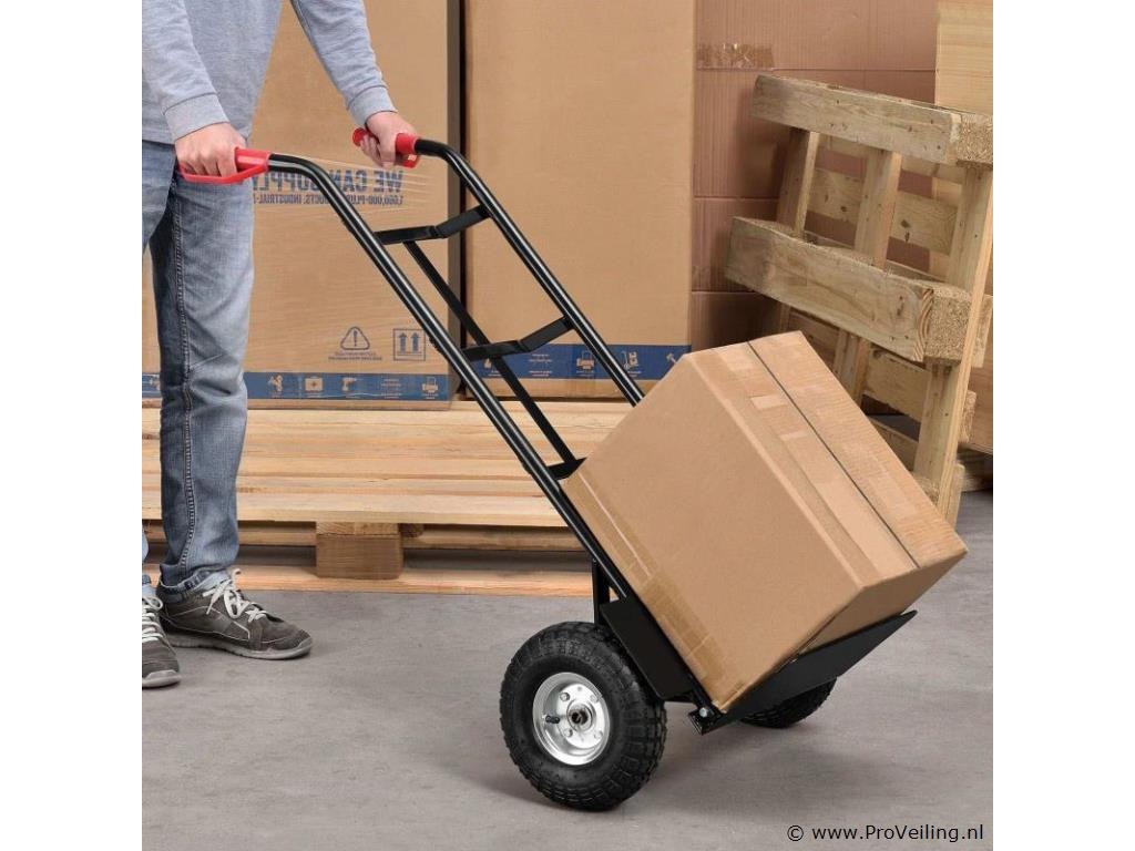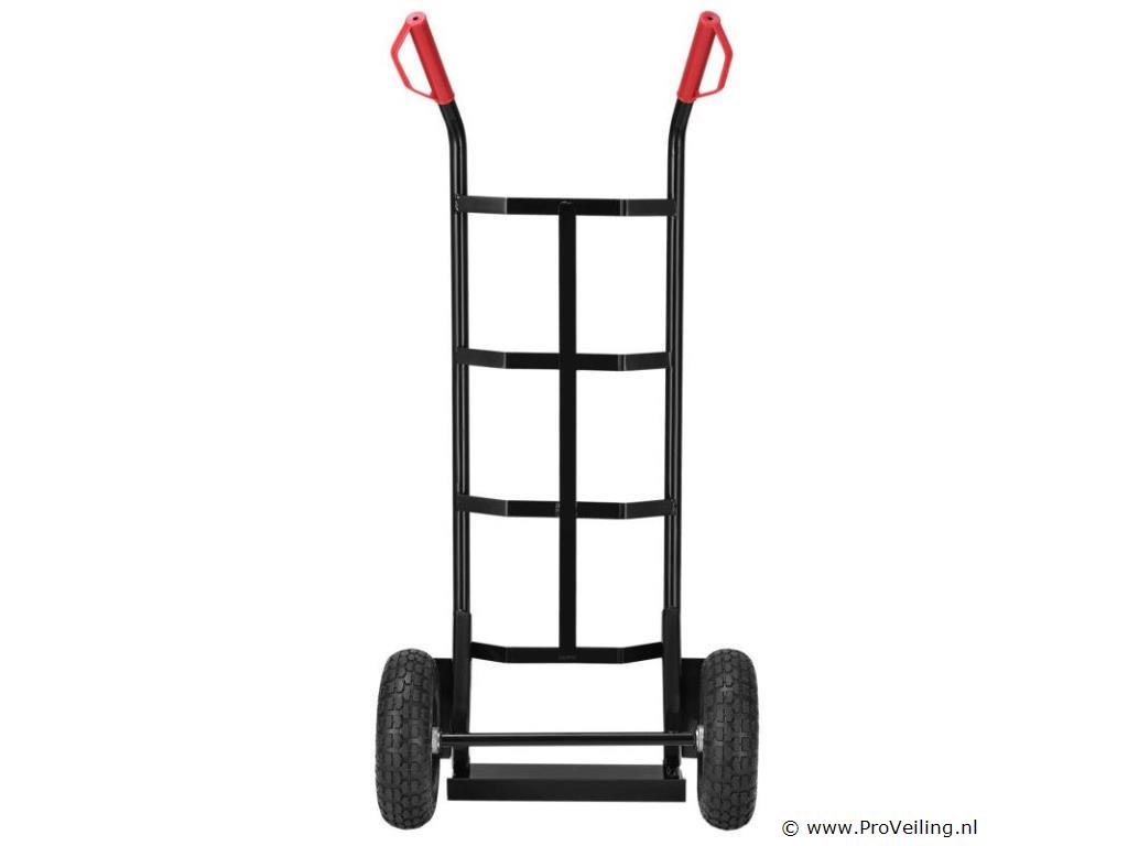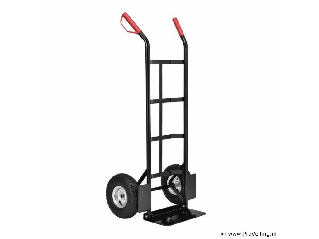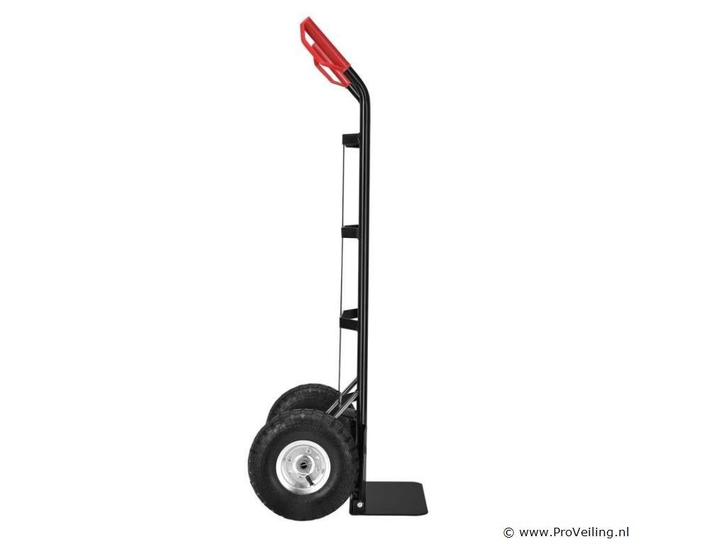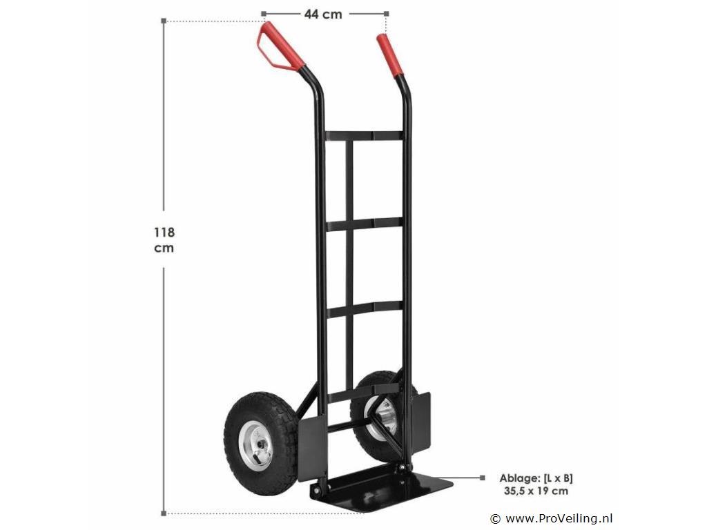 De praktische steekwagen Basic 100 kg met grote wielen en rode handvatten is de ideale hulp bij het vervoeren van zware en onhandelbare voorwerpen. Drankkratten, verhuisdozen, meubels of elektronische apparaten - met deze robuuste stalen steekwagen vervoert u alles snel en eenvoudig. De transportwagen is geschikt voor zowel binnen- als buitengebruik. Het is gemakkelijk te rangschikken. Obstakels zoals trappen of stenen worden gemakkelijk overwonnen. U bespaart veel tijd en moeite en beschermt ook uw rug. Technische specificaties: Draagvermogen: max. 100 kg Gewicht: 9kg Kleur: zwart, rood Materiaal: staal, kunststof Afmetingen (ongeveer): Hoogte: 118cm Breedte: 44cm Laadschop: 35,5 x 19 cm Leveringsomvang: 1 x steekwagen 1 x Duitstalige montagehandleiding