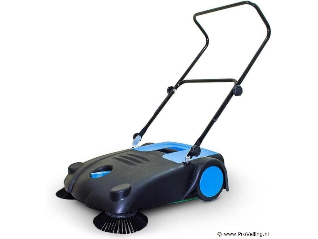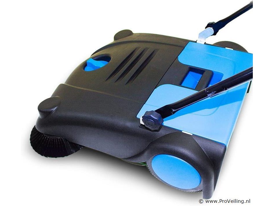 Handveger met 70cm werkbreedte. Met onze veegmachine maakt u in een handomdraai het erf, terras, oprit en alle grotere oppervlakten schoon. De veegmachine wordt ongemonteerd in één pakket verzonden. De eindmontage van de stuurbeugel en de borstels dient u zelf uit te voeren. Instructies zijn inbegrepen. 2 tegengesteld draaiende invoerborstels, veegborstels, afvalcontainer 20 liter, stuurstang Technische specificaties: Werkbreedte 70 cm Vuilcontainer van 20 liter Veegcapaciteit (bij 4 km/u) max. 2800 m²/u Handmatige aandrijving Afmeting 650x600x210mm Gewicht 8,9 kg Leveringsomvang: 1x veegmachine met opvangbak 1x gebruiksaanwijzing