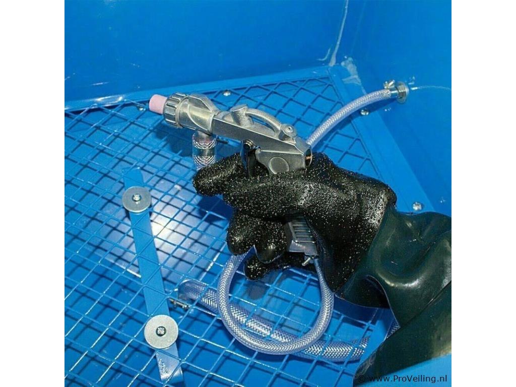 Efficiënt reinigen, verwijderen van verf en roest verwijderen van kleine onderdelen. Ideaal voor kleinere workshops en hobbygebruik. Aangesloten op een persluchtcompressor is deze compacte zandstralencabine met bituxx een allrounder. Door de gesloten cabine (90L) met binnenverlichting, schone en vrije materialen veilig zonder vuil en aanslag te veroorzaken. De leveringsomvang omvat een persluchtpistool met een 3/8 "buitendraadaansluiting en 4 verschillende sproeiers voor verschillende korrelgroottes. 5x verwisselbare PVC-privacyfilms zorgen te allen tijde voor een duidelijk zicht.