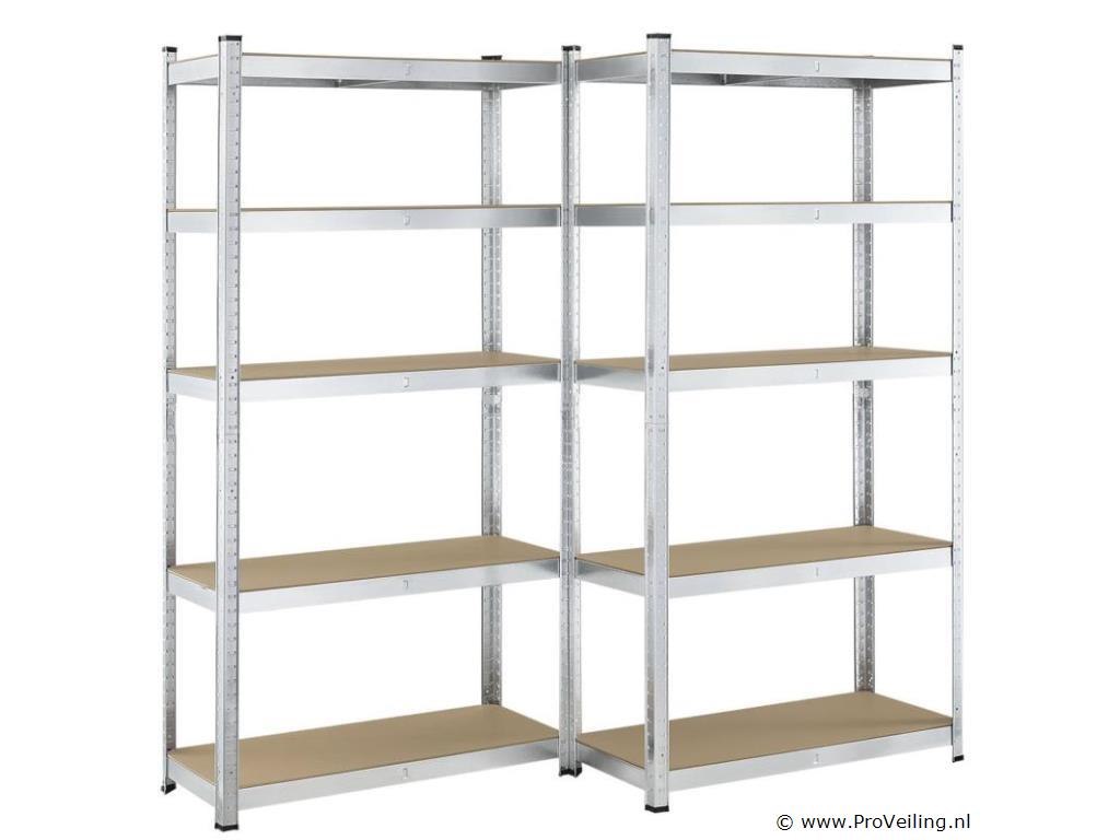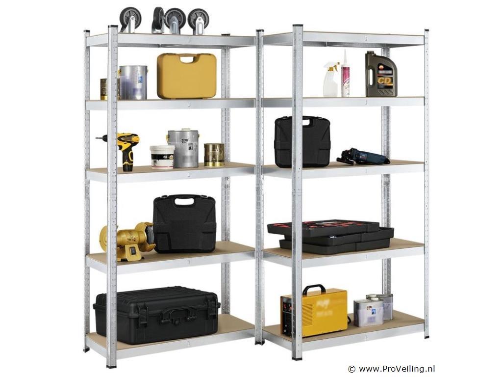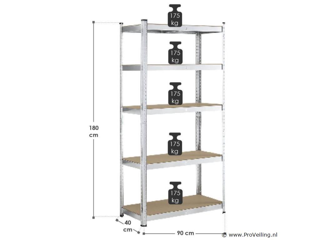 Het praktische opbergrek Basic set van 2 (zilver), bestaande uit twee planken van 180 x 90 x 40 cm, is de perfecte aanvulling voor de kelder, garage, werkplaats, berging en andere woonruimtes. De twee zware planken zijn gemaakt van gegalvaniseerd metaal. Met in totaal 10 planken bieden de stabiele insteekplanken veel ruimte voor het overzichtelijk en overzichtelijk opbergen van gereedschap, tuinaccessoires, benodigdheden en andere spullen. Kunststof voetjes beschermen je vloer tegen lelijke krassen. Technische specificaties: Materiaal frame: metaal, verzinkt Materiaal planken: 100% hout (MDF) Materiaal voetjes: kunststof Kleur: Zilver Legborden per heavy-duty legbord: 5 Maximaal draagvermogen per plank: 175 kg Totaal aantal verdiepingen: 10 Maximaal totaal draagvermogen: 1750 kg Aantal dwarsbalken: 10 Aantal voeten: 16 Afmetingen (ongeveer): Hoogte: 180 cm Breedte: 90 cm Diepte: 40cm Leveringsomvang: 2 x Opbergrek 10 x planken 1 x Instructie Let op: Je ontvangt het product goed verpakt als bouwpakket voor zelfmontage per pakketdienst. Opmerking: draag handschoenen bij het monteren van de planken om verwondingen te voorkomen.