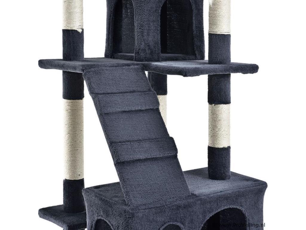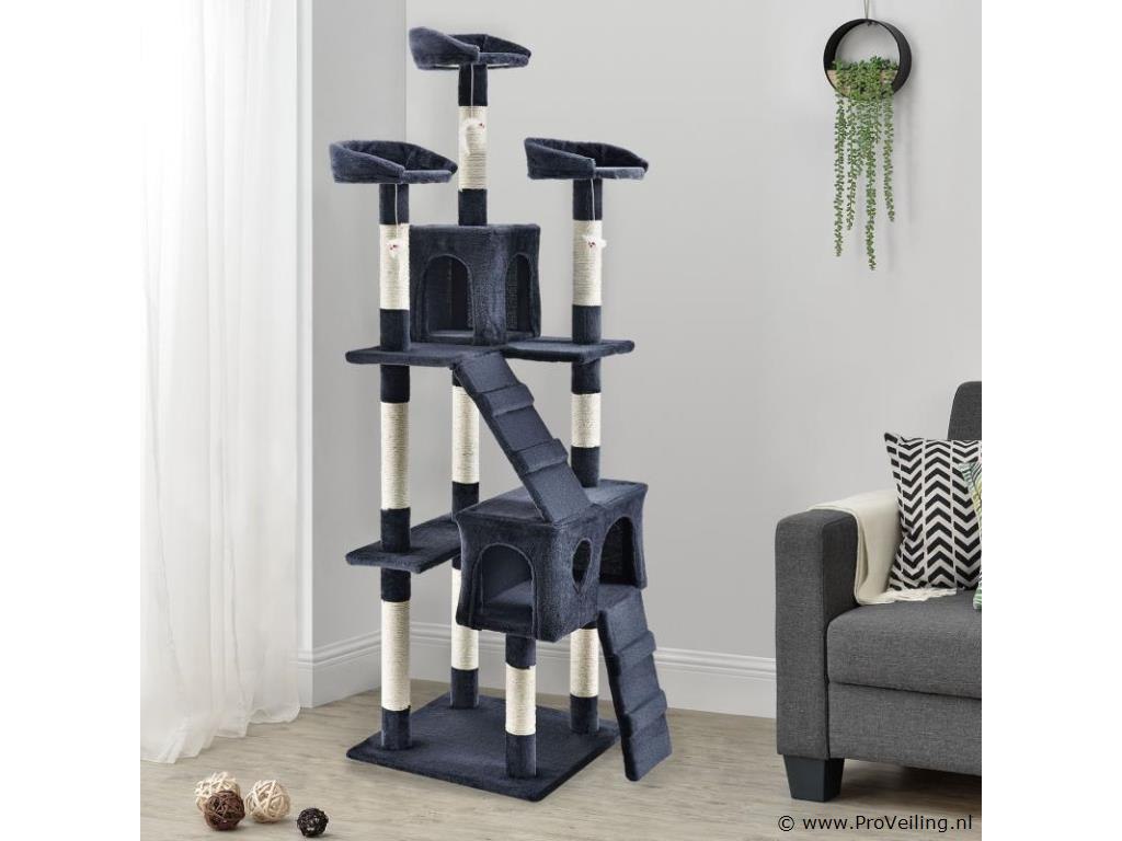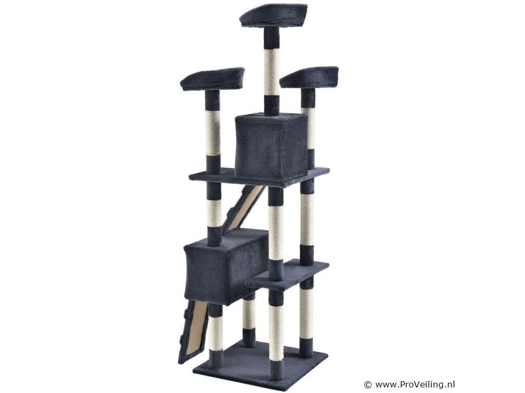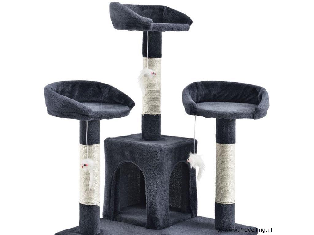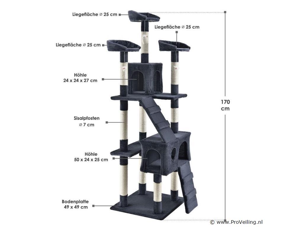 De halfhoge krabpaal Amy (grijs) laat kattenharten sneller kloppen. Het biedt uw geliefde huisdier tal van mogelijkheden om te spelen, rond te springen, te rusten en hun klauwen te scherpen. Uw kat zal zich helemaal op zijn gemak voelen en zich graag terugtrekken in de krabpaal. Door zijn compacte ontwerp neemt de 170 cm hoge krabpaal weinig ruimte in beslag en is zelfs in kleine appartementen te vinden. Dit maakt deze krabpaal tot een waardevolle investering voor iedere kattenbezitter. Technische specificaties: Materiaal: MDF hout, pluche, sisal Kleur grijs Diameter kolommen: 7 cm Aantal ligplaatsen: 3 Aantal grotten: 2 Aantal ladders: 2 Aantal muizen: 3 Afmetingen (ongeveer): Totale hoogte: 170 cm Bodemplaat: 49 x 49 cm Grot groot: 50 x 24 x 25 cm Grot klein: 24 x 24 x 27 cm Diameter ligvlak: 25 cm Leveringsomvang: 1 x krabpaal 1 x Instructie