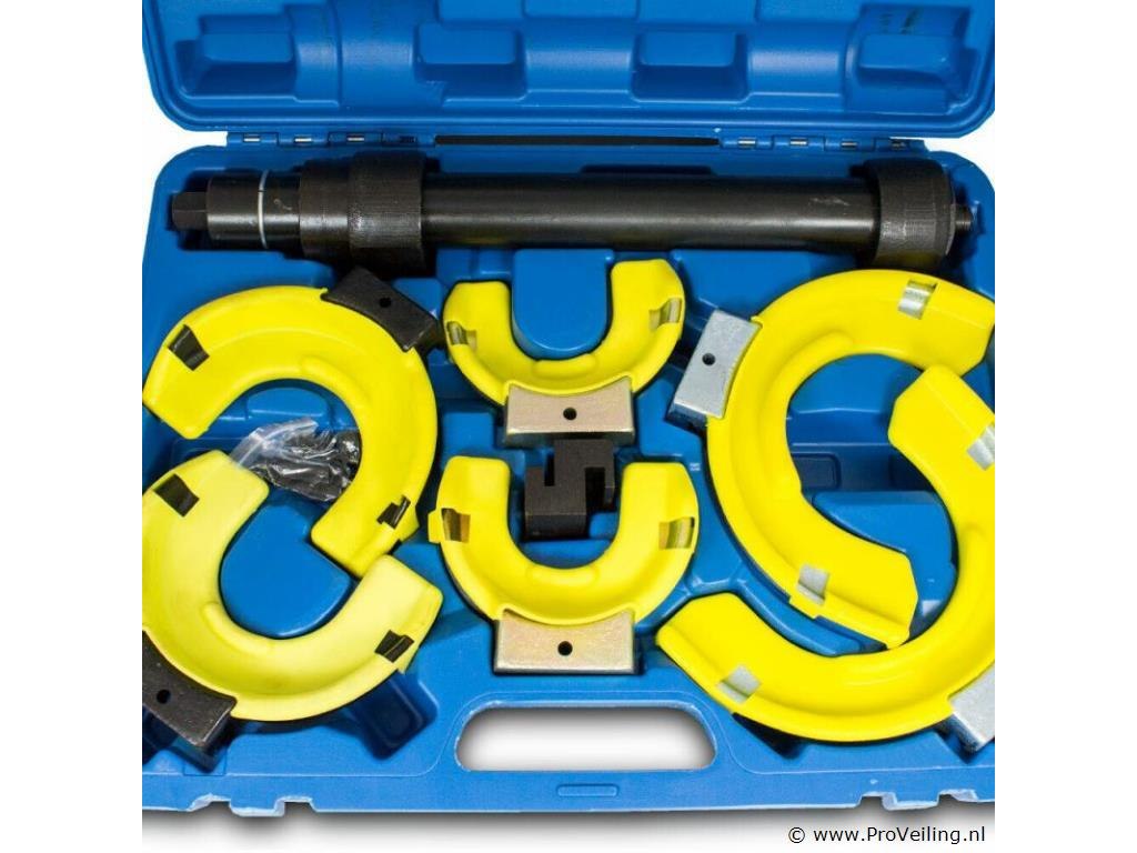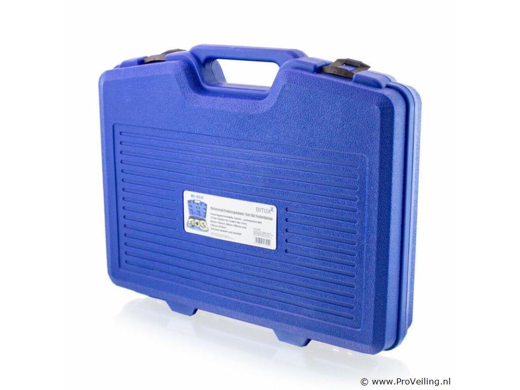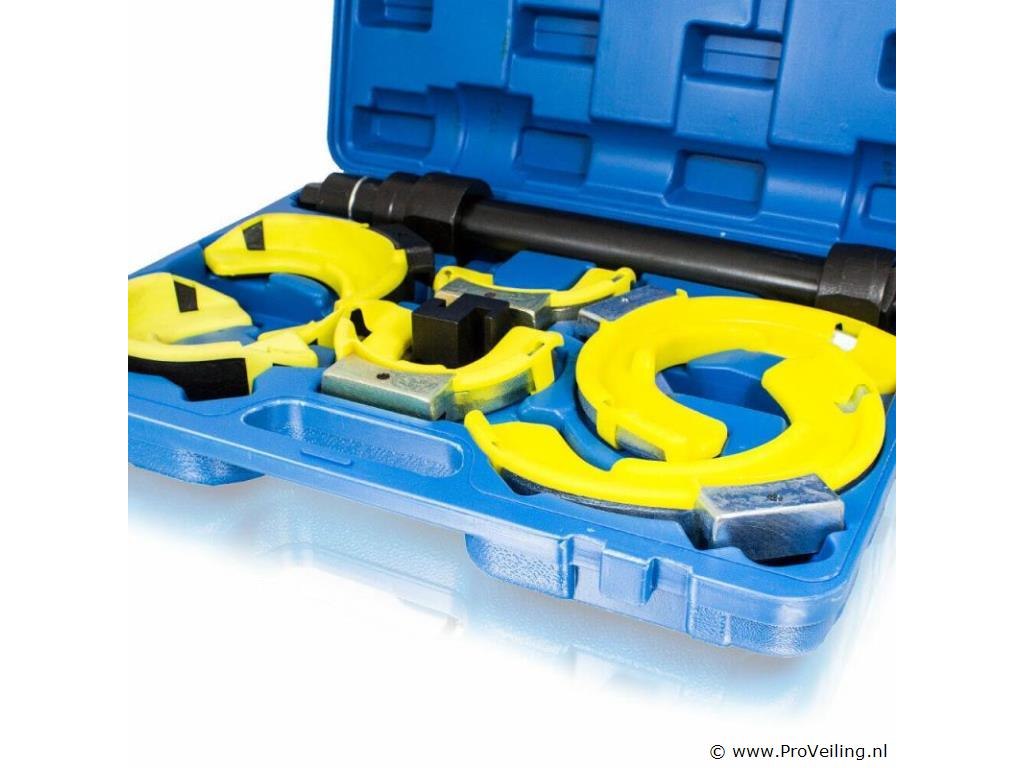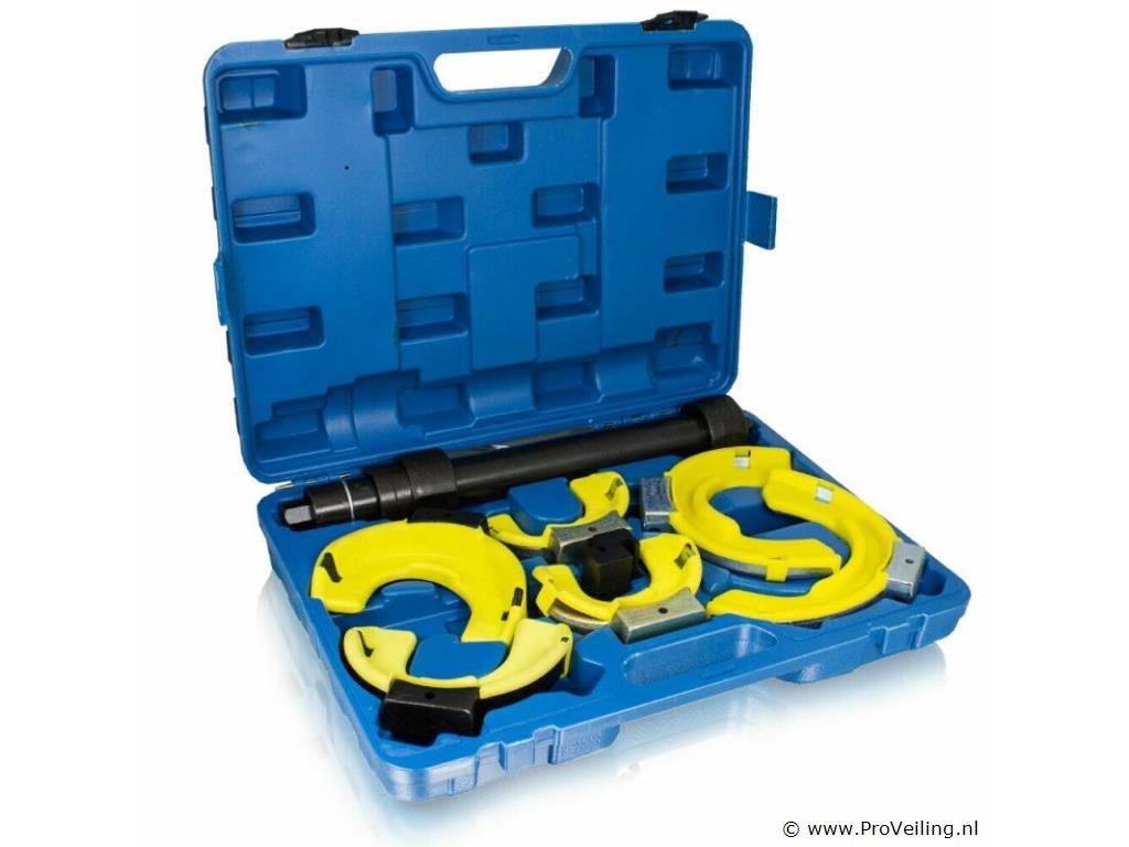 Geschikt voor alle standaard McPherson schokdempers met conische of cilindrische veren. Voor montage en demontage van McPherson-veerpootsystemen op de voor- en achteras van vele voertuigtypen. Voor andere veren die in één richting taps toelopen, is een afstandsstuk voorzien. Perfect voor het wisselen van topmounts, schokdempers of veren. Deze veerspanner is ook ideaal voor het verlagen van sport- of schroefophangingen. Het gereedschap mag alleen worden gebruikt door opgeleide specialisten met specialistische kennis van chassis- of veerveranderingen. Technische specificaties: Telescopische veerspanner met 21 mm sleutelmaat voor de klemaandrijving 1x paar veerhouders voor een toepassingsbereik van 80 - 110 mm 1x paar veerhouders voor een toepassingsbereik van 105 - 145 mm 1x paar veerhouders voor een toepassingsbereik van 145 - 190 mm Afstandsstuk voor 30 mm offset Maximale overspanning: 300 mm Gewicht inclusief koffer: 14,6 kg Materiaal: staal Leveringsomvang: 1x telescopische veerspanner 3x paar pennenhouders 1x afstandhouder 1x transportkoffer