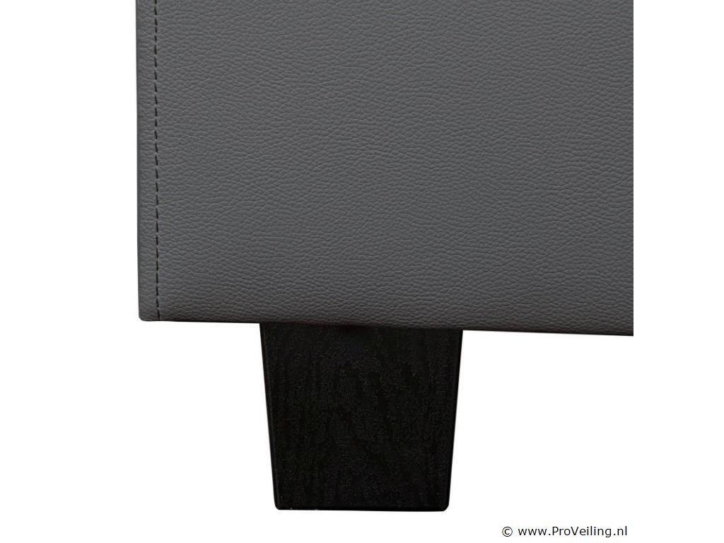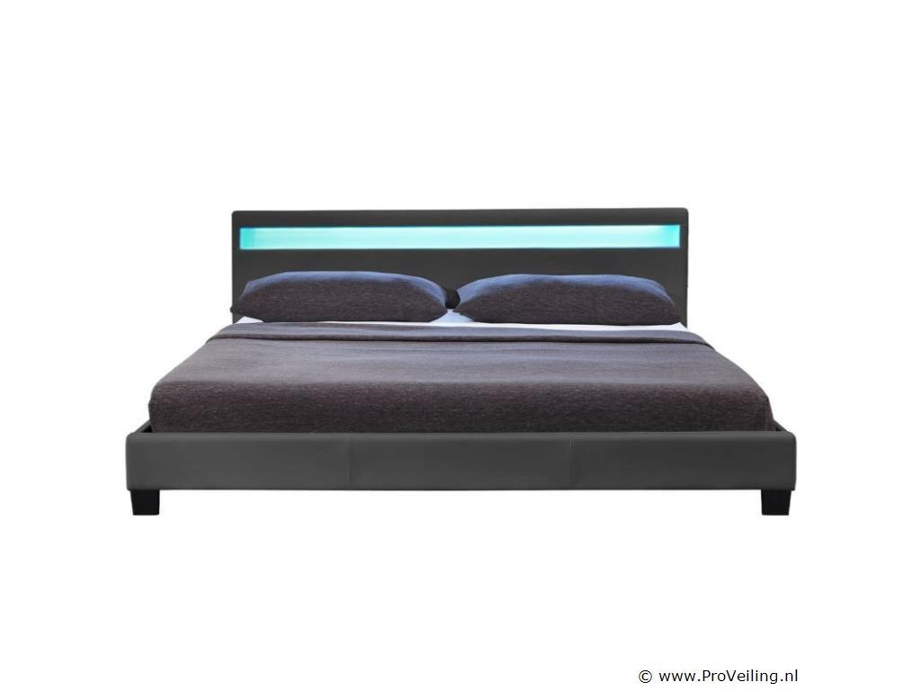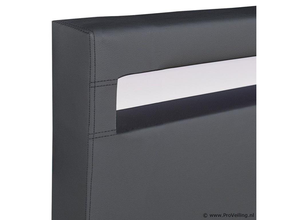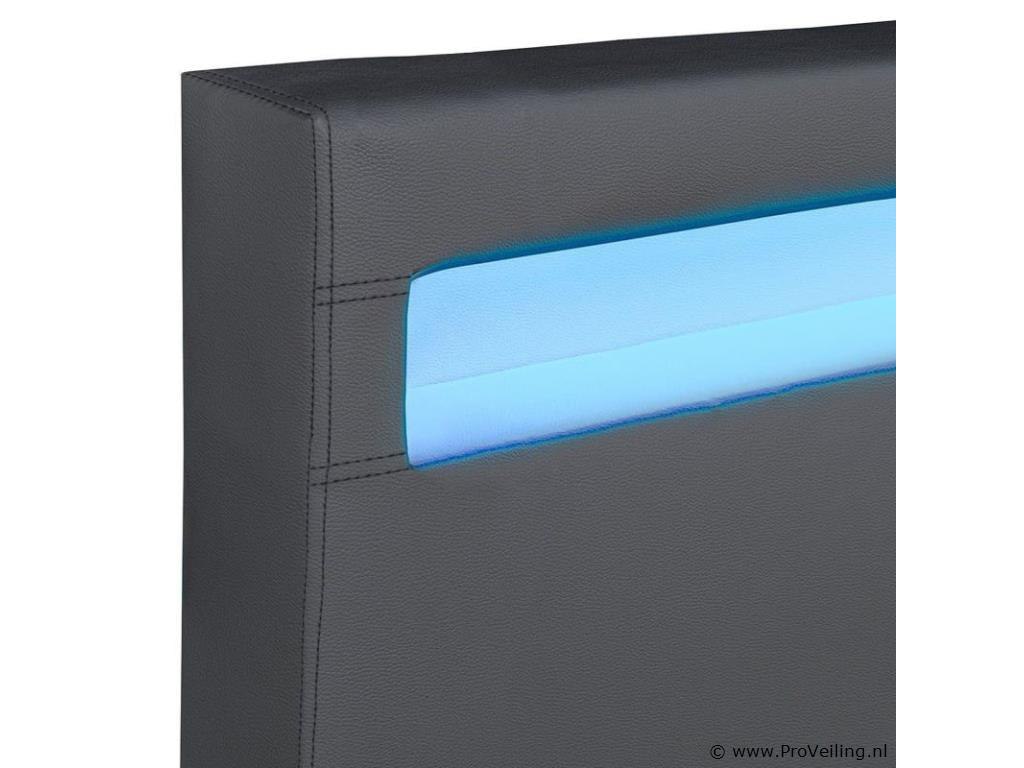 Het gestoffeerde bed Paris (140x200 cm, donkergrijs) is een echte meevaller. Op de combinatie van bedframe en lattenbodem slaap je heerlijk comfortabel en rustig. De lattenbodem biedt het ideale ligvlak voor je matras van 140x200 cm, die zowel voor jongeren als volwassenen uitstekend geschikt is. Het ruimtebesparende formaat maakt hem perfect voor kleine slaapkamers of logeerkamers. Leunend tegen het comfortabel gestoffeerde hoofdeinde kunt u ook ontspannen lezen of tv kijken. Het heeft een geïntegreerde LED-strip waarvan het licht een prachtig effect heeft op het donkergrijze kunstleer en de ruimte een geweldige flair geeft. Technische specificaties: Producttype: bedframe Kleur: donkergrijs Stijl: Modern Materiaal frame: MDF hout, metaal Materiaal bekleding: kunstleer (84% PVC, 16% polyester) Verlichting: LED-strip met afstandsbediening Lichtkleur: 16 verschillende kleuren Vermogen: 14,3 W Lichtstroom: 234 lm Kleurtemperatuur: 2000 - 10000K Afmetingen (ongeveer): Afmetingen: 145 x 213 cm Ligoppervlak: 140 × 200 cm Hoogte hoofdeinde: 78 cm Dikte hoofdbord: 7 cm Hoogte bedframe: 15 cm Dikte voetstuk: 5 cm Voeten: 8 cm Opmerkingen over de lichtbron: Het product bevat LED-verlichting. De meegeleverde LED-verlichting is alleen bedoeld voor scène-/accentverlichting en is niet geschikt voor andere toepassingen. De meegeleverde lampen zijn niet uitwisselbaar, maar uitneembaar. De meegeleverde LED-verlichting is via een IR-afstandsbediening in te stellen en te dimmen. De meegeleverde LED-verlichting moet worden afgevoerd in overeenstemming met de richtlijn afgedankte elektrische en elektronische apparatuur. Leveringsomvang: 1 x gestoffeerd bed 1 x lattenbodem 1 x afstandsbediening 1 x Instructie Let op: De matras is niet inbegrepen. Je ontvangt het product goed verpakt als bouwpakket voor zelfmontage per pakketdienst. Let op!!! Onderdelen kunnen zich in het hoofdbord bevinden.