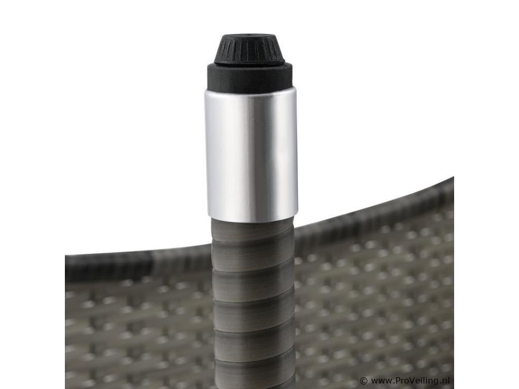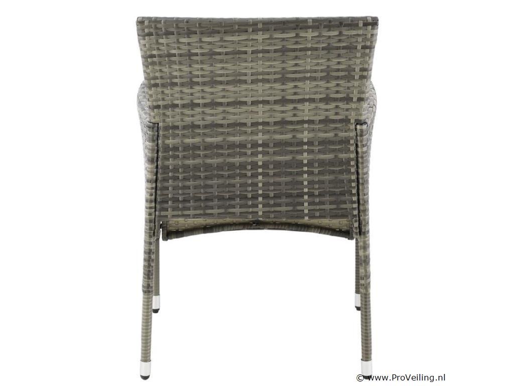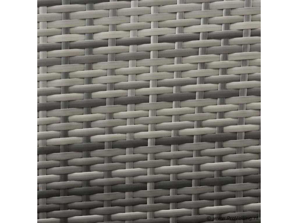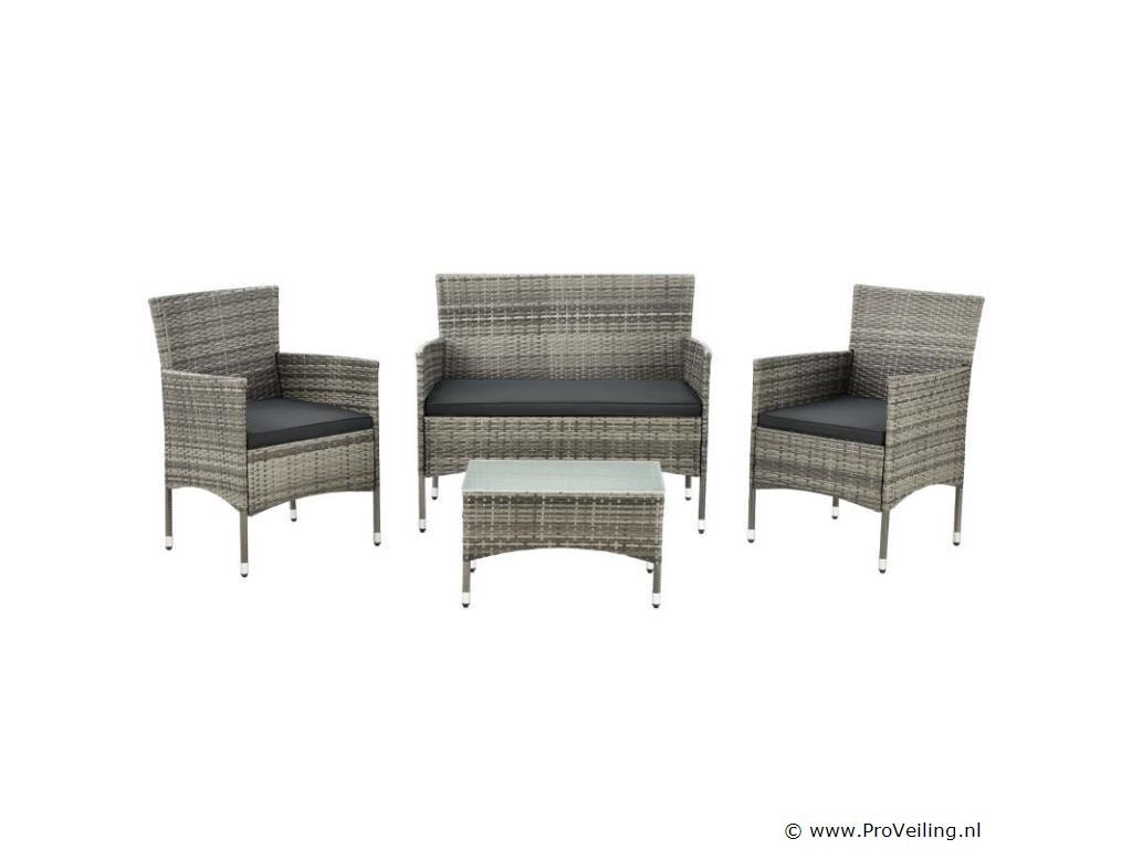 De Fort Myers poly rotan zitgroep (grijs gemêleerd met donkergrijze hoezen) dient als comfortabele lounge voor 4 personen. Met de edele rotan-look verfraait hij elke tuin, terras of balkon. Uitgerust met een rugleuning en kussens, is de tuinset perfect om vele uren door te brengen met familie en vrienden. De 4-delige tuinmeubelset met een stevig metalen frame bestaat uit een 2-zitsbank, twee fauteuils en een kleine bijzettafel met glazen blad. De balkonset is geschikt om gasten in stijl te ontvangen. Zet drankjes en hapjes op tafel en geniet samen van de zomer. Technische specificaties: Materiaal frame: staal, gepoedercoat Materiaal weefsel: polyrotan, gevlochten Materiaal zitkussens: schuim Materiaal hoezen: polyester Materiaal glasplaat: glas (veiligheidsglas) Vlechtkleur: grijs gemêleerd Kleur bekleding: donkergrijs Aantal zitplaatsen: Voor 4 personen Stijl, design: moderne rotan-look Afmetingen (ongeveer): Afmetingen tuintafel: 60 × 35 × 35 cm Afmeting bank: 95 × 52 × 85 cm Afmetingen tuinstoelen: 51 × 52 × 85 cm Hoogte rugleuning vanaf vloer: 85 cm Hoogte armleuning vanaf vloer: 61 cm Zithoogte zonder bekleding: 41 cm Dikte zitkussen: 5 cm Leveringsomvang: 1 x glazen tafel 2 x stoelen 1 x 2-zits zitbank 1 x groot zitkussen 2 x kleine zitkussens 1 x montagehandleiding