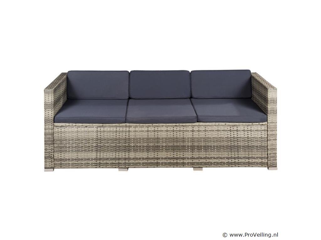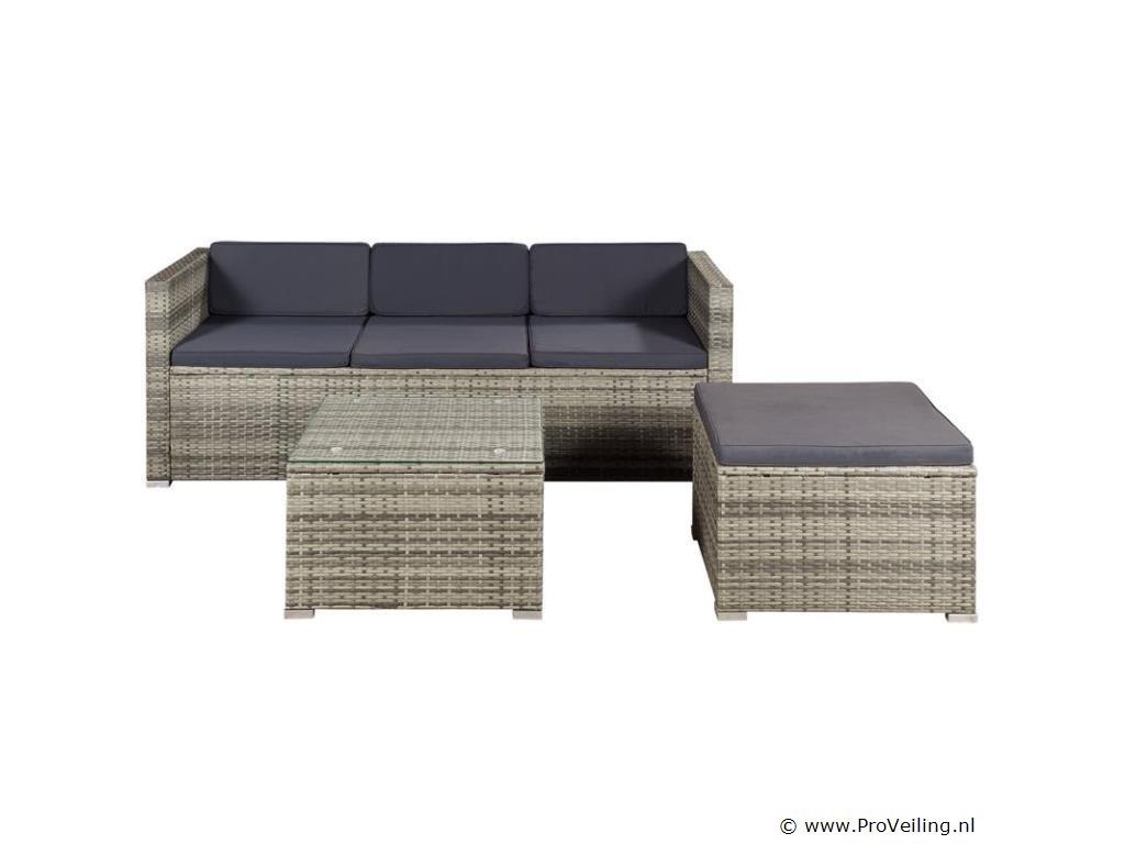 Ben je op zoek naar een comfortabele en grote loungeset voor in je tuin, terras of balkon? Met de zitgroep "Punta Cana M" verander je je buitenruimte in een stijlvolle plek om te ontspannen en je goed te voelen. Gezellige avonden met familie, vrienden of buren worden een geweldige belevenis in de buitenlucht. De unieke rotan-look in beigegrijs met grijze kussens geeft je nieuwe loungemeubel een moderne charme. Creëer je eigen oase van welzijn om te ontspannen en samen te zitten. Technische specificaties: Materiaal: Weefsel: vezels van polyrotan Frame: staal Tafelblad: glas Zitkussens: schuim Hoezen: 100% polyester Zithoogte: 37 cm Dikte zitkussen: 5 cm Dikte glasplaat: 0,5 cm Kleur: Vlecht: gemêleerd grijs Kussenslopen: donkergrijs Afmetingen (ongeveer): Bank: 178 × 69 × 65 cm (L x B x H) Tafel: 61 × 61 × 37 cm (L x B x H) Kruk: 61 × 61 × 37 cm (L x B x H) Dikte zitkussen: 5 cm Dikte glasplaat: 0,5 cm Breedte rugkussen: 54 cm Zitkruk: 60 × 60 cm Leveringsomvang: 1x tafel 1 x Bank 1 x kruk 4 x zitkussens 3 x rugkussens 1 x montagehandleiding