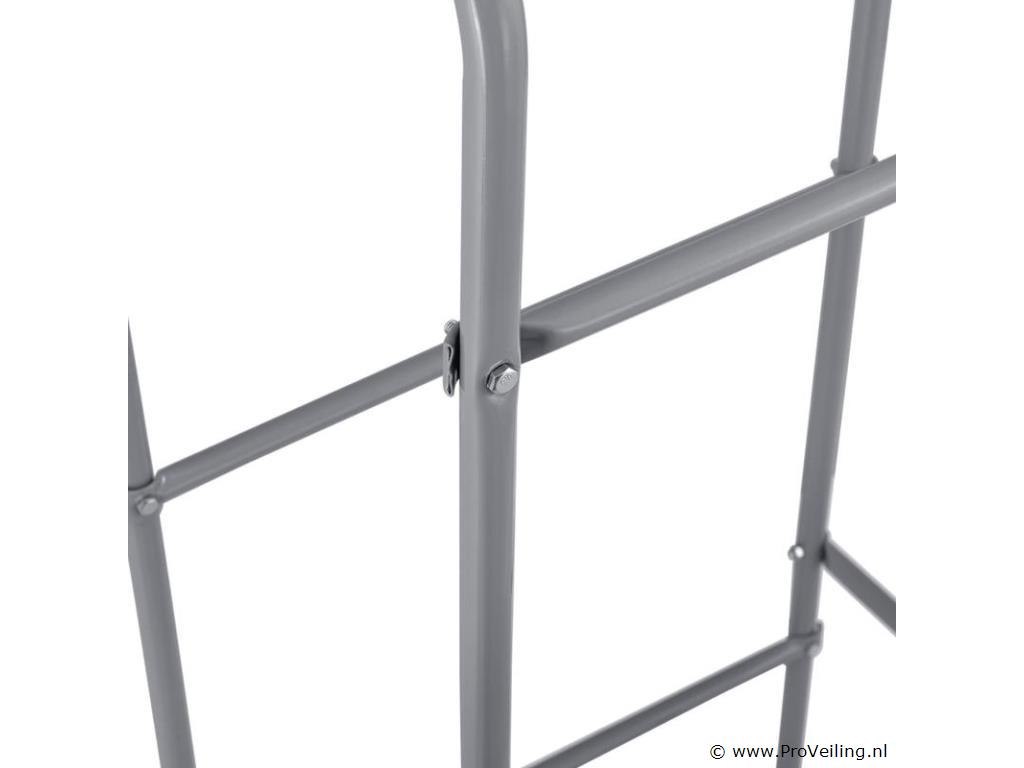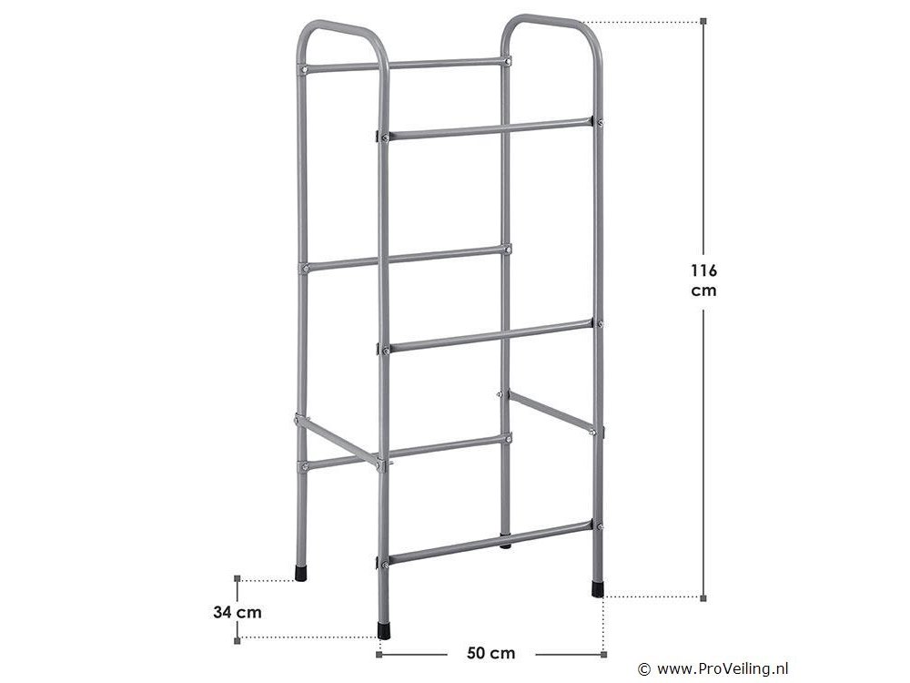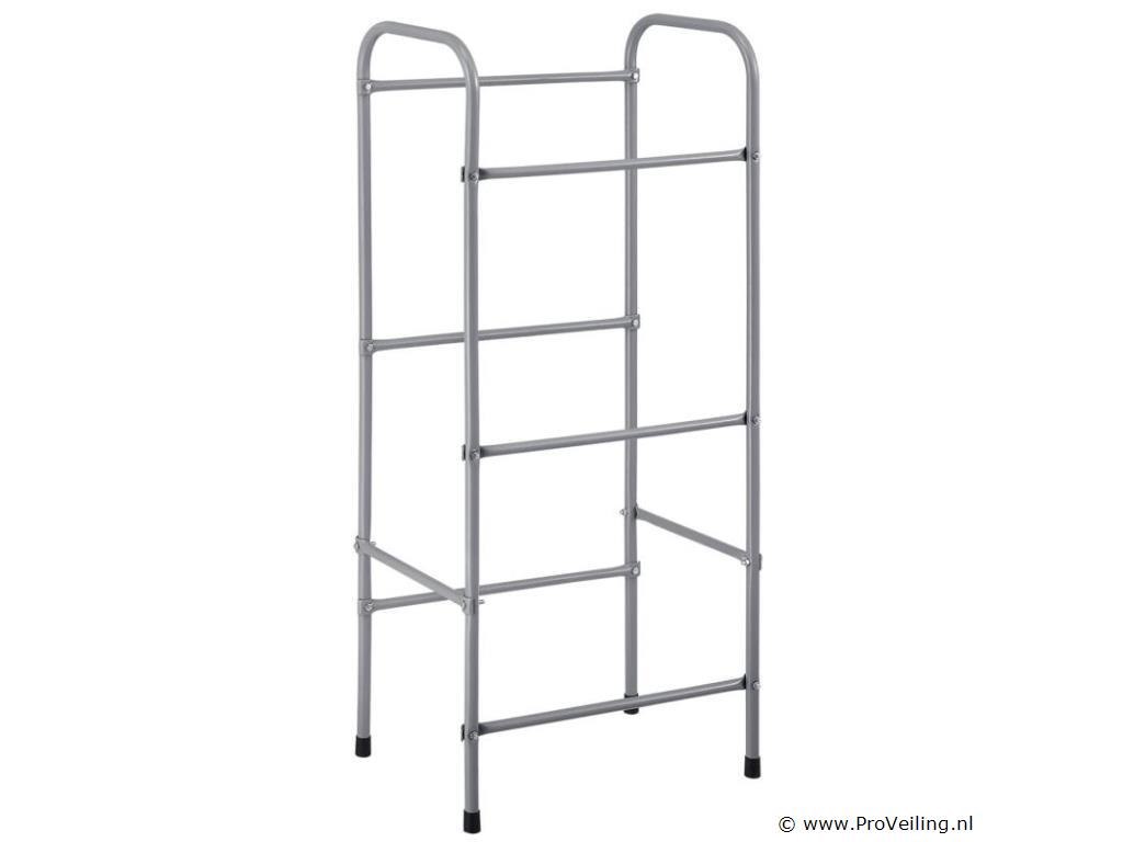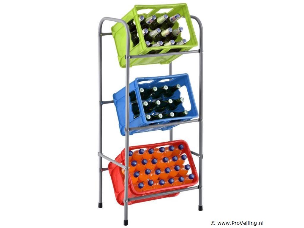 Een slim organisatiesysteem! Het vrijstaande metalen krattenrek Cool (grijs) maakt het je makkelijker om je huishouden te organiseren. In het drankenplateau van 50 x 34 x 116 cm kun je 3 kratten netjes en ruimtebesparend sorteren. Krijg sneller toegang tot je favoriete drankje en zie direct de volle flessen en varianten. Geen vervelend en tijdrovend stapelen meer! In het krattenrek kunt u op 3 niveaus drie drankkratten van 17 kg of vouwboxen (bijv. met groente en fruit) opbergen. De plank is de perfecte aanvulling op de keuken, kelder, garage of berging. Daar blijft hij onopvallend door zijn discrete design. Technische specificaties: Materiaal frame: metaal, gepoedercoat Colour box plank: grijs Aantal niveaus: 3, aantal dozen: 3 Maximaal gewicht per krat / doos: 17 kg Maximale belasting: 51 kg Volume universele box / Eurobox: 32 liter Geschikt voor: gestandaardiseerde kratten (water-, sap-, bierkratten), aardappelkratten, voorraaddozen, vouwdozen, eurodozen Gebruiksplaats: keuken, kelder, garage, berging, gang, studeerkamer, zolder, kinderkamer, babykamer (droge, goed geventileerde binnenruimtes, op stalvloer) Afmetingen (ongeveer): Afmetingen (BxDxH): 50 x 34 x 116 cm Afmetingen onderste middenvak (BxDxH): 45 x 29 x 39 cm Afmetingen bovenste vak (BxDxH): 45 x 29 x 39 cm Buisdiameter: zijdelen 2 cm, kruisschoren 1,5 cm tips: Let op de maximale belasting en een gelijkmatige gewichtsverdeling. Plaats de drankkratten voorzichtig op het schap. Schroeven zijn inbegrepen, maar sluitringen niet. Leveringsomvang: 1x Drankkrattenrek voor 3 kratten 1 x Instructie