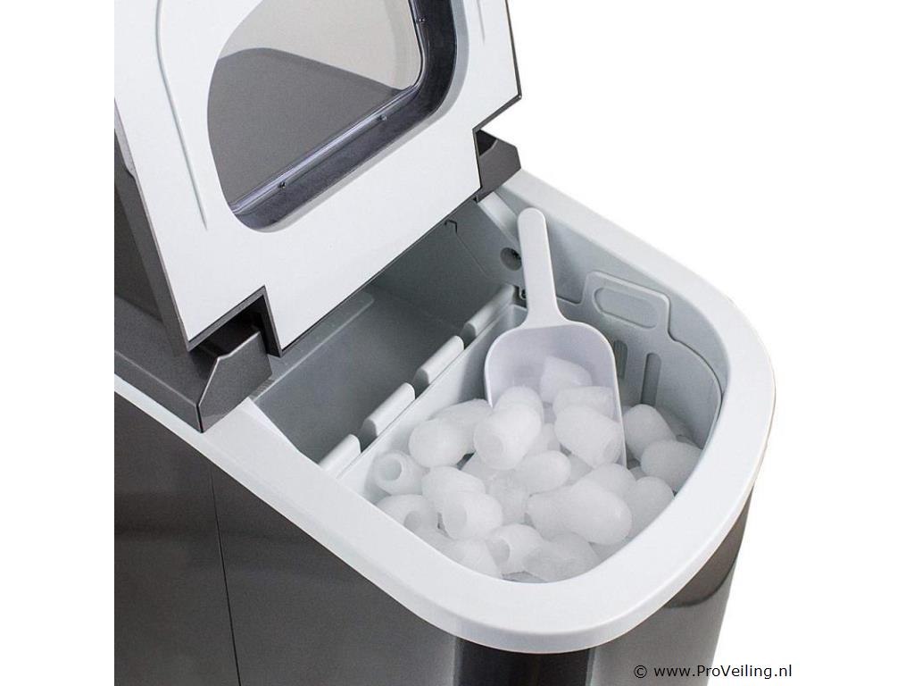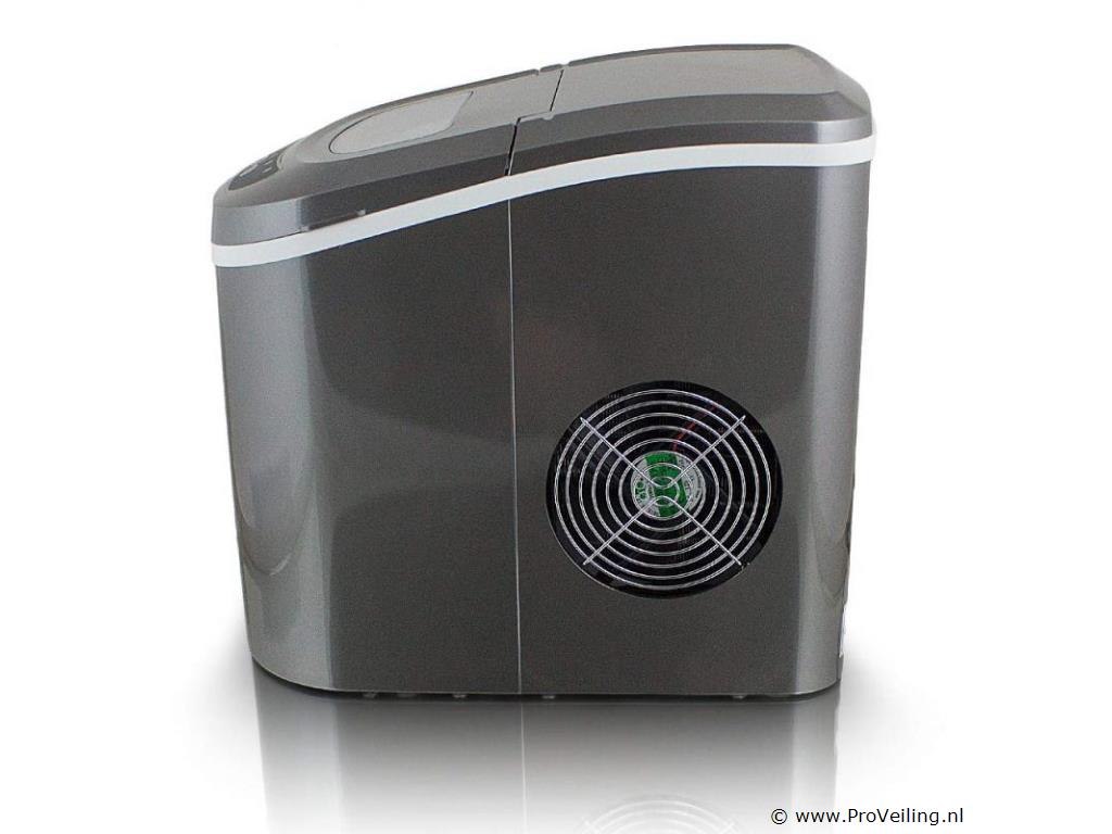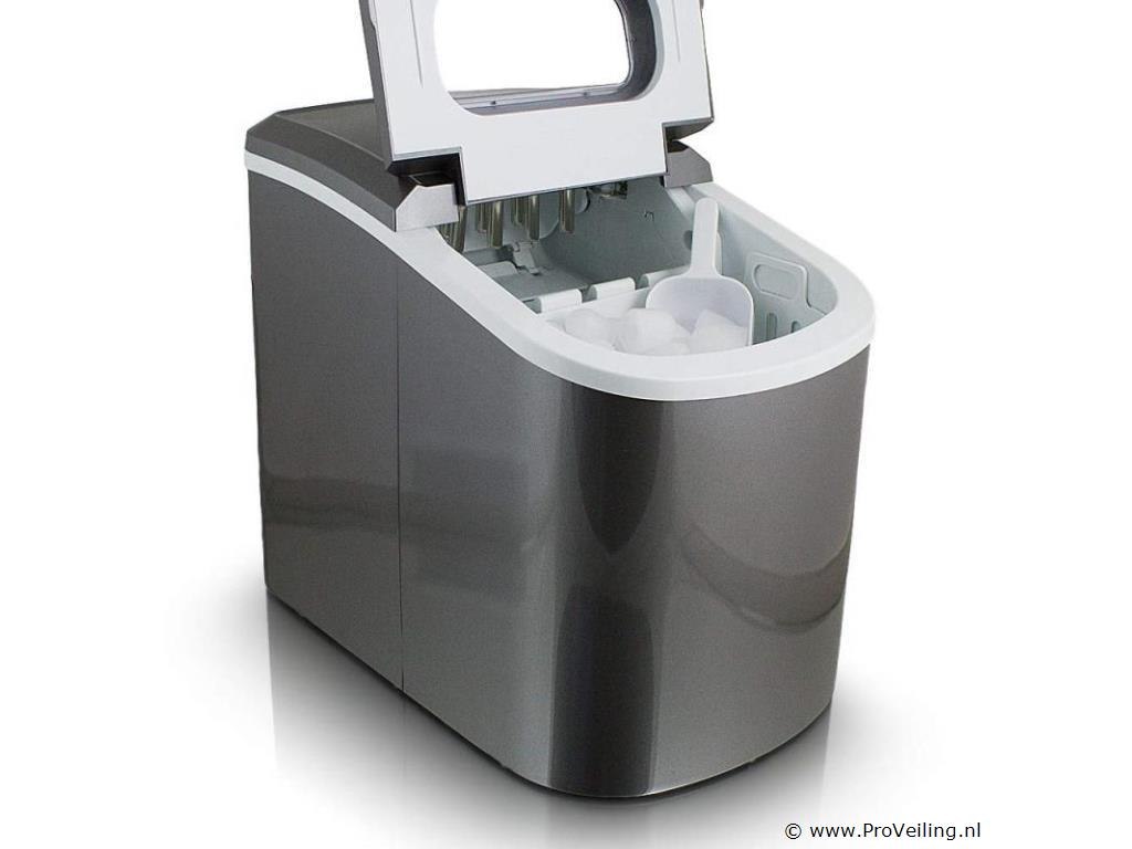 Inrichting: gekoelde opslagbak voor ijsblokjes ca. 6-13 minuten voor een lading ijsblokjes IJs dagelijkse output 10-12kg 2 selecteerbare ijsblokjesmaten Hoogwaardig compressorgeluidsniveau (30db) GS getest Technische specificaties: Afmetingen: 350 mm x 250 mm x 325 mm (L/B/H) Watertank: 2,2 liter Gewicht: 7,85 kg Kleur: donkergrijs Capaciteit: 0,8 kg ijs Dagelijkse productie: 10 - 12 kg ijs Vermogen: 220-240 volt 50Hz/120 watt Leveringsomvang: 1x ijsblokjesmachine 1x ijsblokjesschep 1x gebruiksaanwijzing