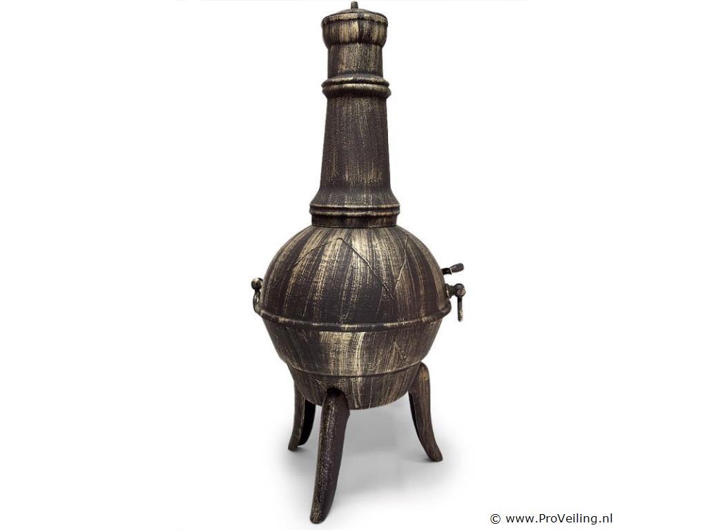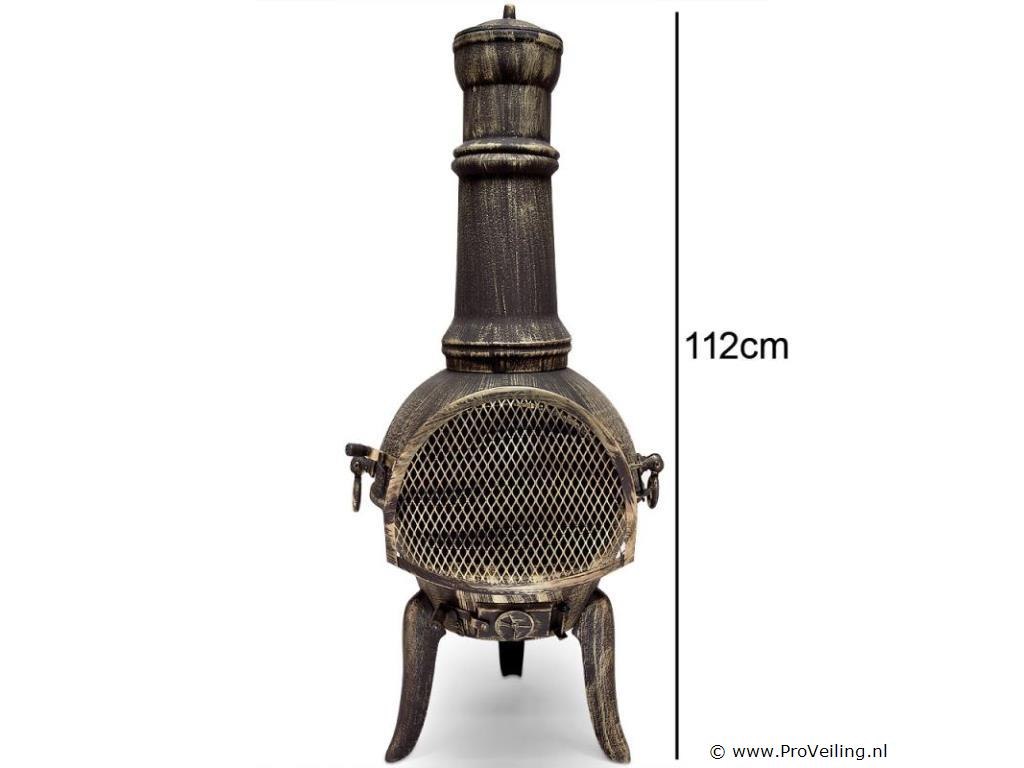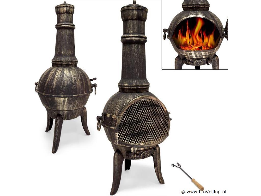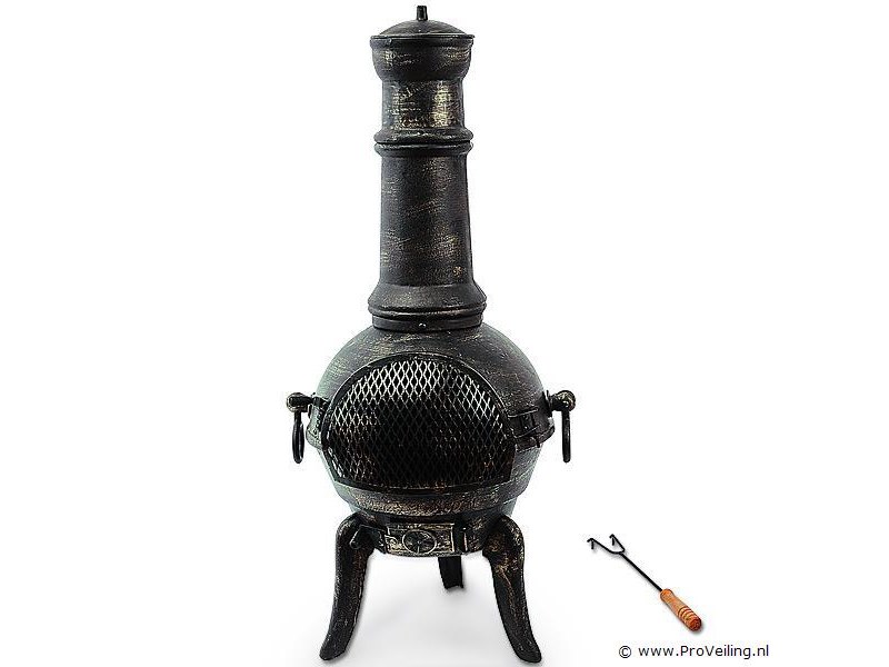 De verwarmende blikvanger! Een exclusieve en hoogwaardige tuinhaard en tegelijkertijd een verkwikkend element voor jouw tuin of balkon. Chimeneas, ook wel Azteekse kachels genoemd, zijn al eeuwenlang beproefde Mexicaanse houtkachels. Ze werden gebruikt voor voedselbereiding en voor ceremoniële doeleinden. Bovendien zorgen ze voor een gezellige warmte en een aangename, ontspannen sfeer. Productvoordelen: Gietijzeren terraskachel Roosterhaak met houten handvat Afsluitbare deur met vonkenscherm Met luchttoevoerregeling Verwijderbaar rooster Afneembaar deksel Aslade Technische gegevens: Afmetingen: Hoogte 112 cm Ø vuurpot: 44cm Gewicht: 28 kg Materiaal: gietijzer Leveringsomvang: 1x Chimenea terraskachel 1x pook 1x rooster (uitneembaar en opvouwbaar)