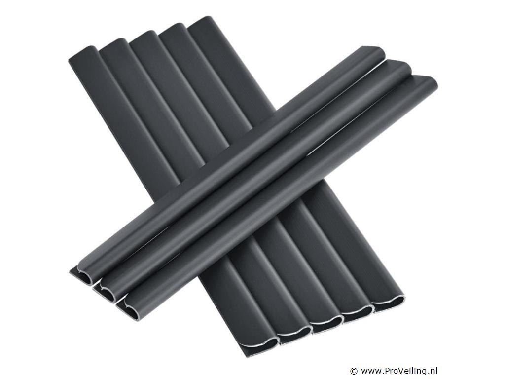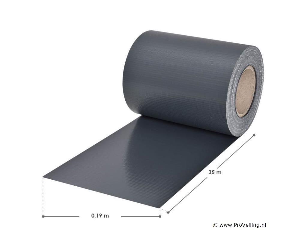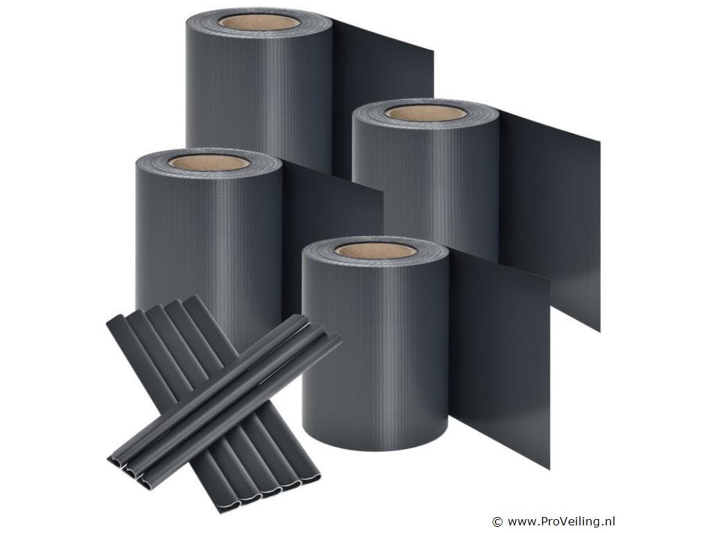 Technische specificaties: Kleur antraciet Aantal montageklemmen: 120 Materiaal: PVC PVC-kwaliteit: 450 g / m Temperatuurbereik: -30 ° C tot +70 ° C UV- en weerbestendig: Ja Afmetingen (ongeveer): Lengte: 4 x 35m Hoogte: 19cm