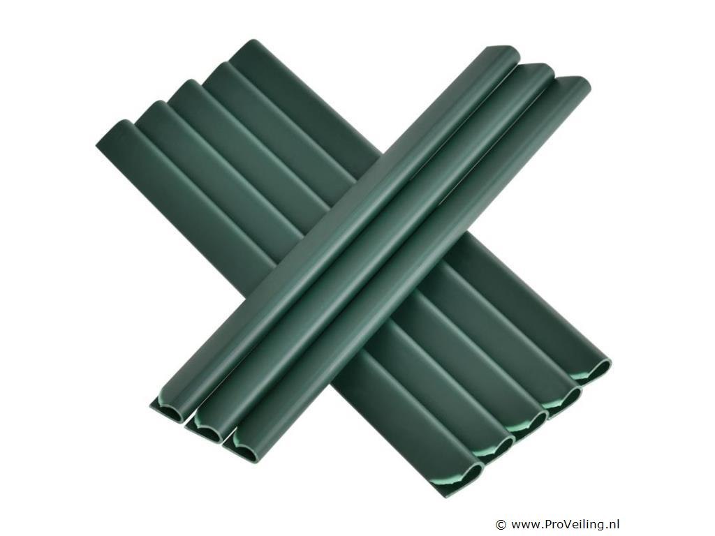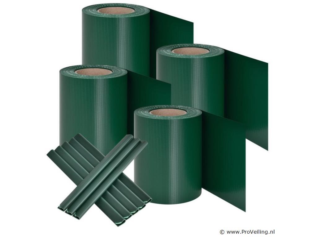 Technische specificaties: Kleur groen Aantal montageklemmen: 120 Materiaal: PVC PVC-kwaliteit: 450 g / m Temperatuurbereik: -30 ° C tot +70 ° C UV- en weerbestendig: Ja Afmetingen (ongeveer): Lengte: 4 x 35m Hoogte: 19cm