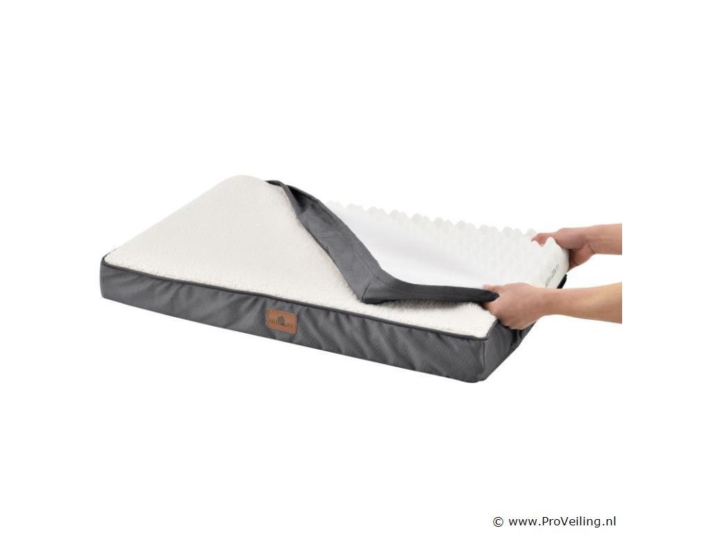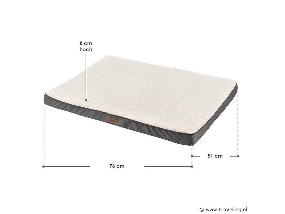 Comfortabele hondenmand Milow orthopedisch 76 x 51 x 8 cm (in beige, grijs) De Milow orthopedische hondenmand van 76 x 51 cm is het perfecte alternatief voor de conventionele hondenmand. Met zijn schuimkern met hoge dichtheid dient de hondensofa als een comfortabele lig- en slaapplaats voor puppy's en kleine honden. Maar de hondenbank is ook ideaal als comfortabele basis in de hondenkooi of in het hondenhok. Je geliefde viervoeter kan zich op het donzige hondenkussen heerlijk comfortabel voelen en heerlijk slapen. Het huisdierbed kan ook gebruikt worden als bed voor katten en andere huisdieren. Technische specificaties: Materiaal bekleding onderkant: Polyester Materiaal hoes bovenkant: Sherpa fleece, pluche Materiaal binnenkern: schuimkern Kleur huisdierbed: beige, grijs Soort dier: hond, kat Maat geschikt voor: puppy's en kleine honden Plaats van gebruik: thuis / onderweg Afmetingen (ongeveer): Afmeting huisdierbed: 76 x 51 cm Hoogte huisdierbed: 8 cm Leveringsomvang: 1 x pluizige hondenmand 1 * Instructie U ontvangt het product goed verpakt per pakketdienst.