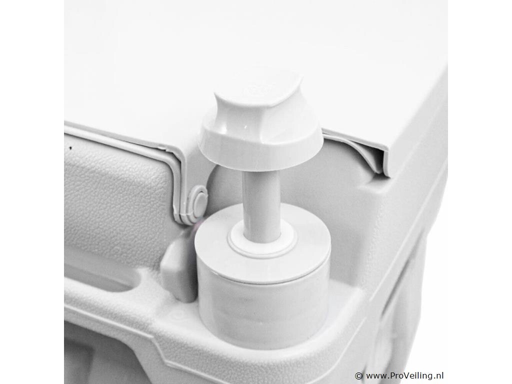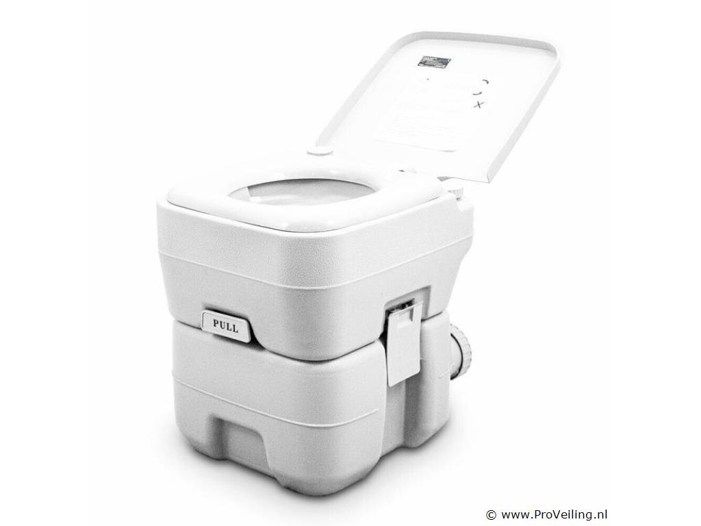 Camping toilet Het praktische, draagbare campingtoilet is de ideale metgezel voor op de camping, in de tuin, in de stacaravan, thuis, op festivals, op vakantie, buitenshuis en onderweg. Hygiënisch en schoon doorspoelen is mogelijk door middel van een plunjerpomp, tevens heeft het toilet een dubbel spoelsysteem. Ook de zithoogte van 415 mm biedt een aangenaam zitcomfort. De vuilwatertank wordt geleegd via een grote afvoeropening. Het toilet heeft een verswatertank van 10L en een vuilwatertank van 20L. Met een gewicht van slechts 5 kg is hij ook erg licht. Het toilet is geïmpregneerd met een plastic afdichting, voor het eerste gebruik eenvoudig met een droge doek afvegen. TECHNISCHE SPECIFICATIES Vuilwatertank: 20L Verswatertank: 10L Afmetingen (H/B/D): 415 x 365 x 420 mm Zithoogte: 415 mm Maximale belasting: 200 kg Maximale belasting: polyethyleen met hoge dichtheid, polypropyleen Kleur: lichtgrijs LEVERINGSOMVANG ? 1x campingtoilet