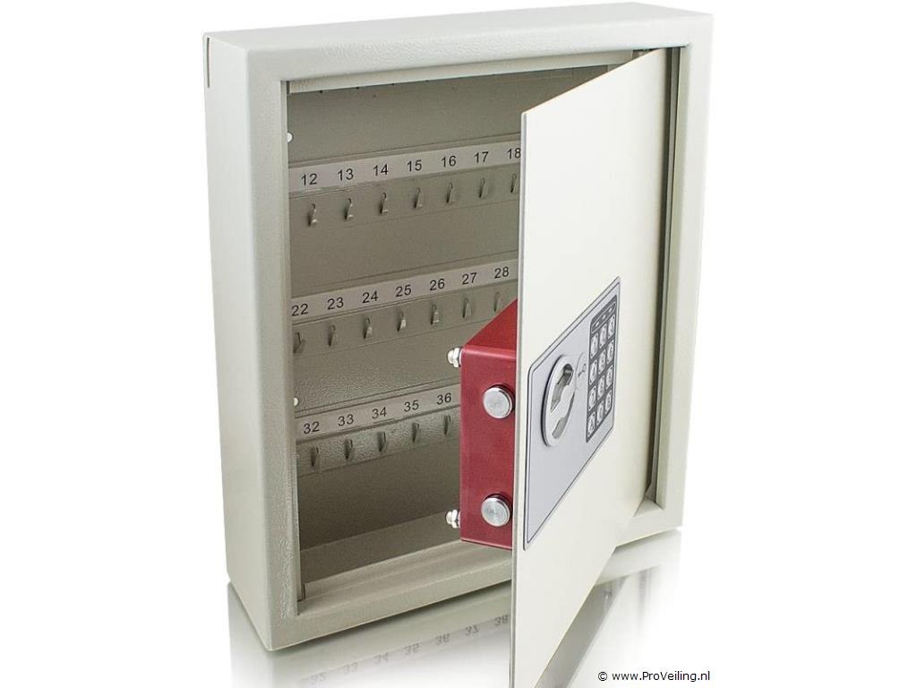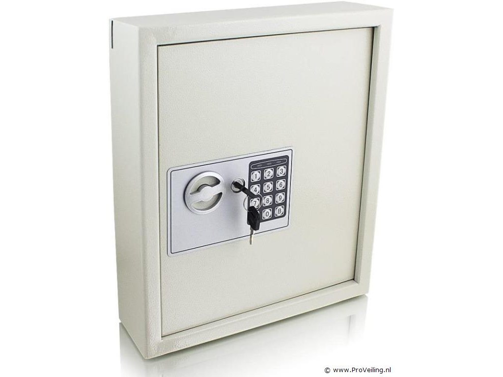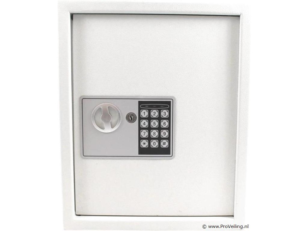 De sleutelkluis is ideaal voor het opbergen van belangrijke sleutels. Kies tussen veilige wand- of kastmontage. De sleutelkluis kan alleen worden geopend door het invoeren van uw persoonlijke pincode of met de meegeleverde veiligheidssleutel. Inrichting: Sleutelkluis voor wand- of kastmontage 48 sleutelhaken Gleuf voor sleutels elektronisch cijferslot Deur met dubbele grendelvergrendeling Inclusief 2 sleutels Technische specificaties: Afmetingen: 300 mm x 365 mm x 100 mm (B/H/D) Interne afmetingen: 295 mm x 360 mm x 80 mm (B/H/D) Stalen wanddikte: 2 mm Stalen deurdikte: 3 mm Slotbehuizing: polypropyleen Bout: staal, ø15mm Kleur: lichtgrijs Gewicht: 6,8 kg Leveringsomvang: 1x sleutelkluis incl. elektronisch cijferslot 2x beveiligingssleutels 2x bevestigingsbouten 1x gebruiksaanwijzing