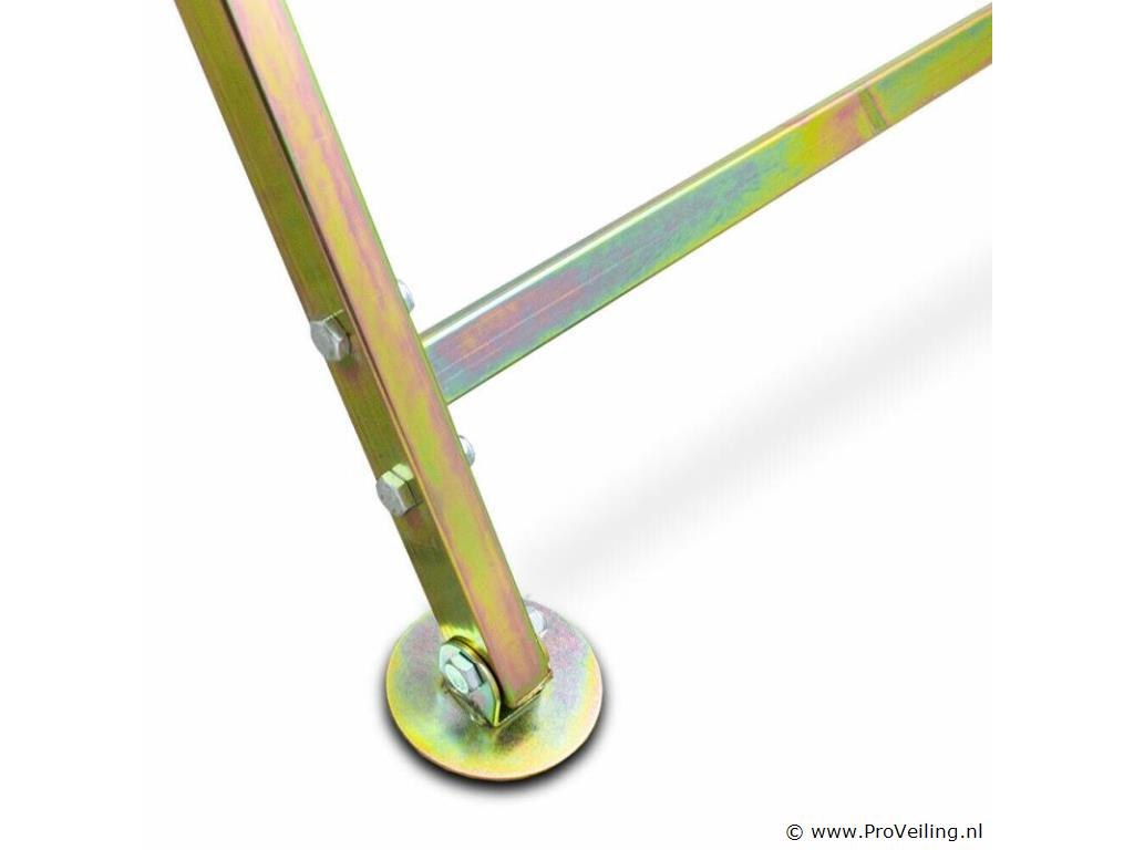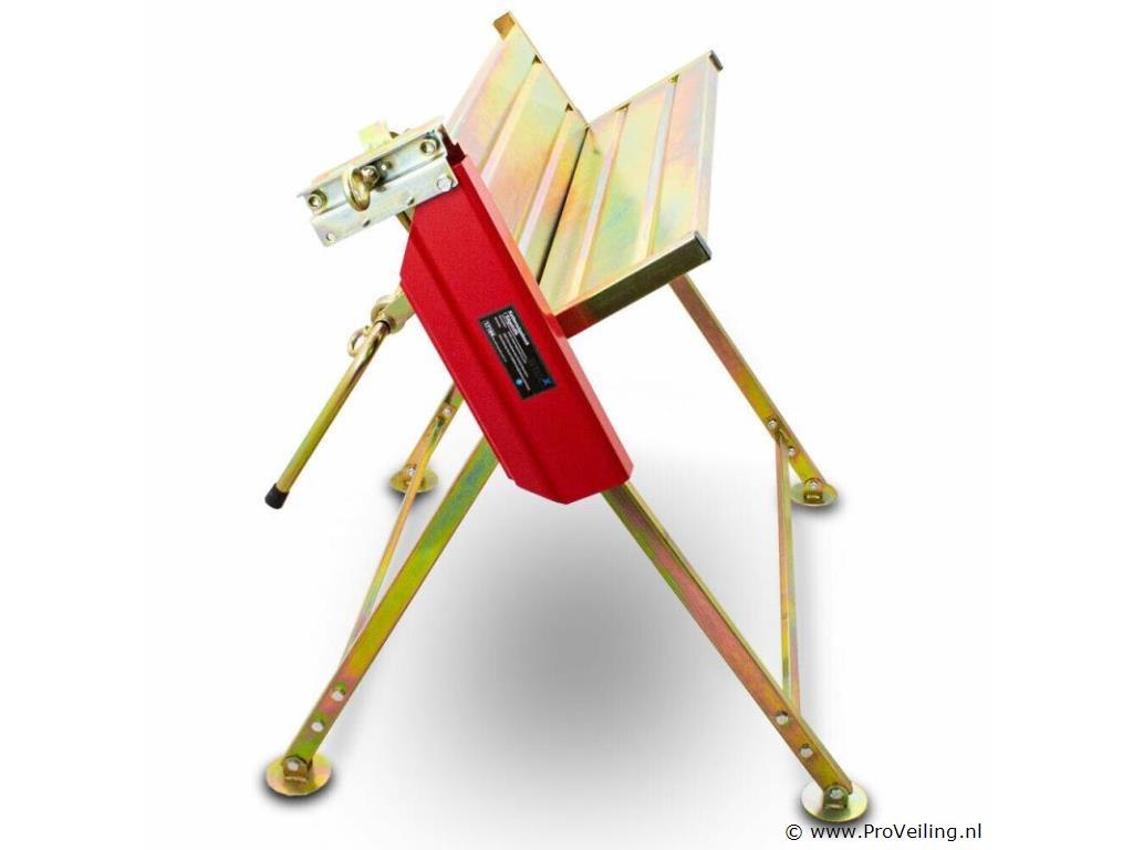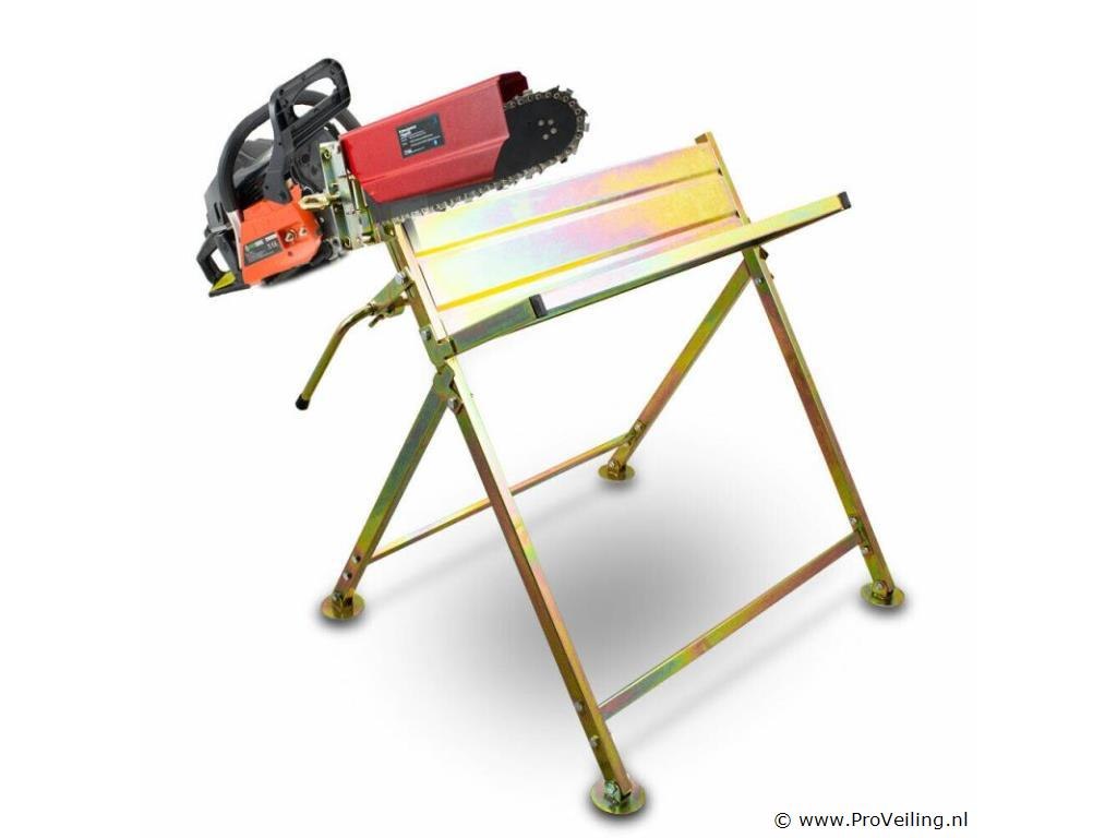 Deze zaagbok met kleminrichting voor kettingzagen van bijna alle fabrikanten is perfect voor de verwerking van open haarden en brandhout. De kleminrichting maakt veilig werken met de geklemde zaag mogelijk. De zaaghulp biedt bovendien een beschermflap voor extra bescherming tijdens het werken. De voeten passen zich aan lichte oneffenheden in de vloer aan en zorgen voor een veilige stand. Om de zaagbok op te bergen, kan deze worden opgevouwen om ruimte te besparen. De zaagbok wordt gedemonteerd geleverd, maar is snel gemonteerd dankzij de uitgebreide montage-instructies Technische specificaties: Gewicht: 11 kg Maximale belasting: 120kg Maximale stamdiameter: 25cm Lengte zwaardbeschermer: kettingbeschermer met kleminrichting ca. 45 cm Afmetingen zaagbok ingeklapt: ca. 81 x 20 x 100cm (L/B/H) Afmetingen zaagbok: ca. 81 x 72 x90 cm (L/B/H) Materiaal: verchroomd, gegalvaniseerd staal Leveringsomvang: 1x kettingzaag paard 1x montagehandleiding Kettingzaag niet inbegrepen.