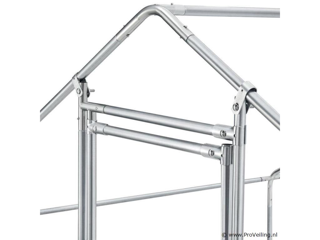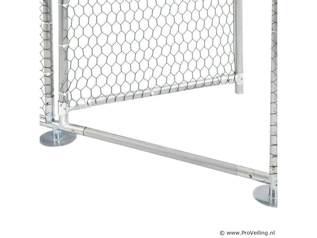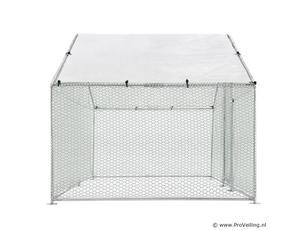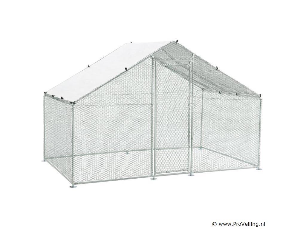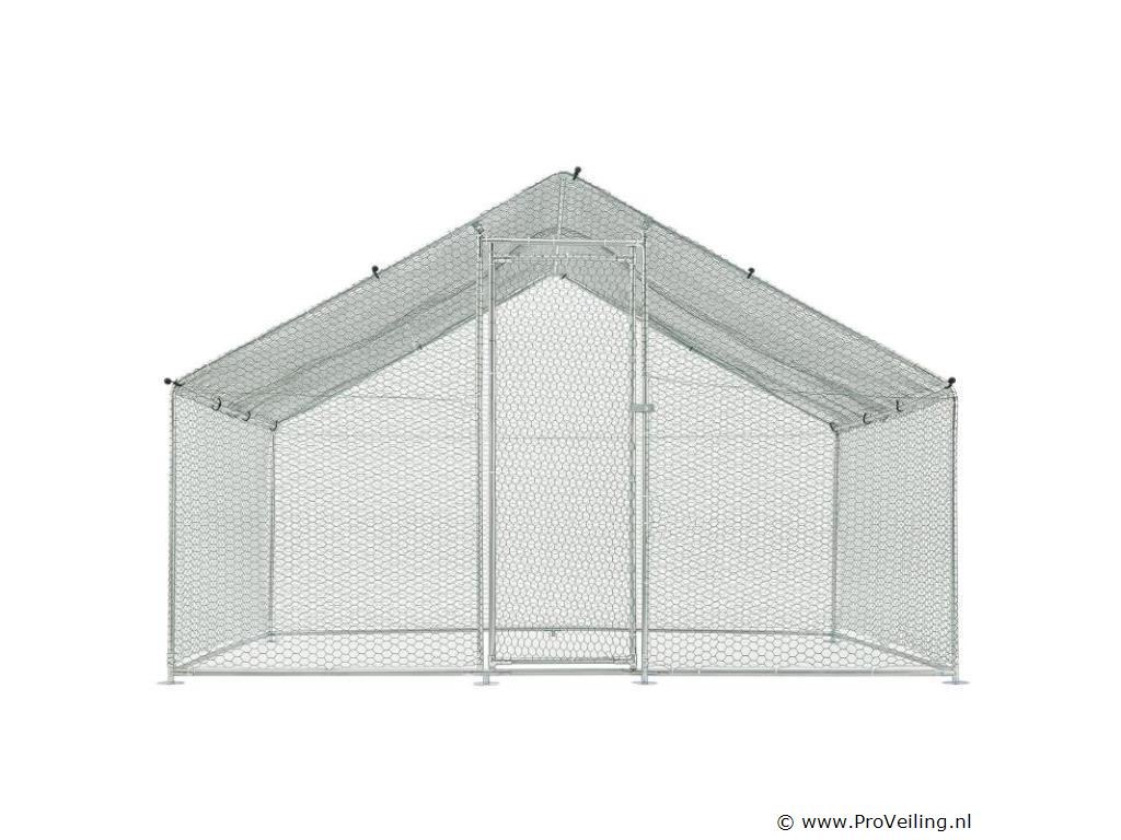 Ben je zelfvoorzienend of heb je een uitlaatklep nodig voor de trend “houd de kippen in de tuin”? Het buitenverblijf HLS25T van 3x2x2 m is perfect om dieren op een soortspecifieke manier buiten te houden. In de gegalvaniseerde box voor kippen, konijnen en ganzen hebben kleine dieren op 6 m² genoeg buitenruimte. Planten zijn hier ook beschermd en droog. Je bevestigt het waterdichte zeildoek flexibel aan het frame. Door de gegalvaniseerde buizen en het PVC-gecoate hek heb je een stabiel en duurzaam kippenhok dat je eenvoudig in elkaar zet door middel van het plug-and-click systeem. Technische specificaties: Materiaal draad: galvanisch verzinkt ijzer, PVC gecoat, zeshoekig (vorm) Materiaal palen: gegalvaniseerd ijzer Materiaal dekzeil: PE (waterdicht, regenbescherming), materiaal accessoires: kunststof Boxkleur: zilver, grijs (frame), wit (zeildoek), groen (net) Geschikt voor: kleine dieren zoals kippen, konijnen, ganzen, eenden & planten (bijv. gewassen, bloemen) Bijzonderheden: Toegankelijk via hoge deur, met poortgrendel, zeildoek Boxvorm: Vierkant Plaats van gebruik: buiten Buitenverblijf 2x3 m: datablad om te downloaden Afmetingen (ongeveer): Totale afmetingen van de volière: 300 x 200 x 200 cm (BxLxH) Oppervlakte buitenruimte: 6m² Hoogte dak: 115 - 200 cm Deur: 65 x 174 cm (BxH) Buisdiameter: 2,5 cm, dikte: 1 mm Rasterhek: 3 x 4 cm (BxH), dikte: 0,5 mm Dekzeil: 340 x 188 cm (BxH) Rol kippennet: 1 x 24m Leveringsomvang: 1 x Kippenren 1 x rol kippenhek 1 x dakzeil 1 x deur met vergrendeling 1 x Instructie Let op: Alleen geschikt voor kleine dieren zoals kippen, konijnen, ganzen, eenden & planten. Vraag: Kan ik meerdere producten aan elkaar koppelen? nee Kan de deur rechts of links worden geopend? We raden aan om ze links te monteren, rechts kan ook. De box is afsluitbaar met een grendel. Er is geen slot met sleutel, het wordt met de hand geopend en gesloten. Het PE dekzeil (waterdicht) heeft geen zonwerende functie, maar dient als regenwering. Je bevestigt het dekzeil flexibel aan de palen door middel van de elastische banden.