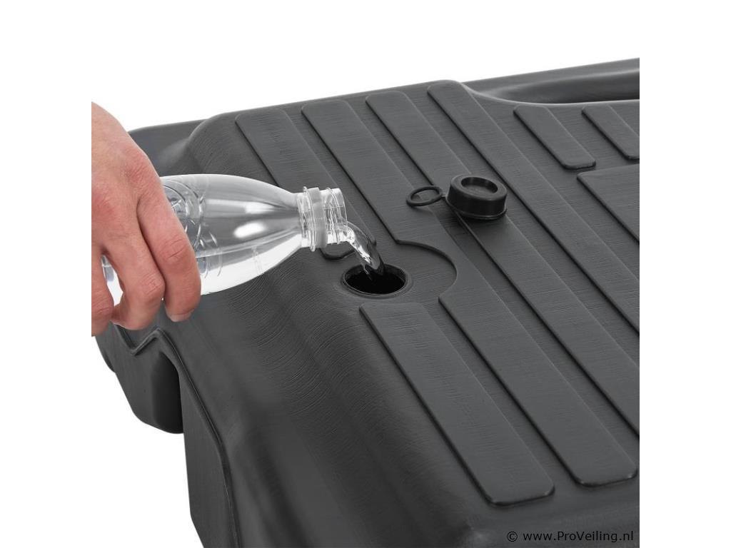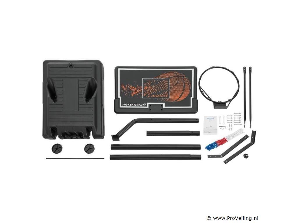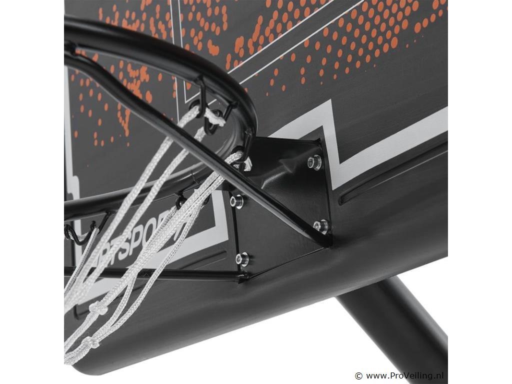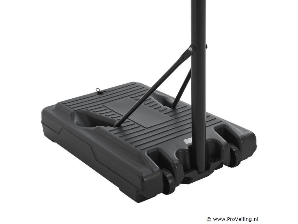 De in hoogte verstelbare basketbalring combineert hoogwaardige materialen met een professioneel design. Het biedt altijd en overal plezier voor jong en oud. Of het nu gaat om een ??start voor de eerste worpen, of om te trainen voor de gevorderde atleet. Dankzij het eenvoudige mechanisme kan je de hoogte van de mand gemakkelijk in 3 stappen variëren. Bovendien kan de robuuste basis met zand of water worden gevuld en biedt zo een bijzonder stabiele stand, die door wind of harde worpen niet wordt bewogen. Ondanks de hoge stabiliteit verplaats je de mand met zijn grote wielen moeiteloos en zonder veel moeite. Technische specificaties: Materiaal frame: staal Materiaal plaat: polyethyleen (PE) Materiaal mand: staal Netmateriaal: kunststof Materiaal basis: polyethyleen (PE) Kleur frame: zwart Kleurbord: zwart, oranje Netto kleur: wit, rood, blauw Afmetingen (ongeveer): max. totale hoogte: 3,5 m Hoogte mand: 2,57 - 2,85 - 3,05 cm Afmetingen bord: 90×60 cm (L×H) Diameter mand: Ø 44 cm Afmetingen voet: 90×60×18 cm (L×B×H) Wielen: Ø 10 cm Framebuis: Ø 5,5 cm