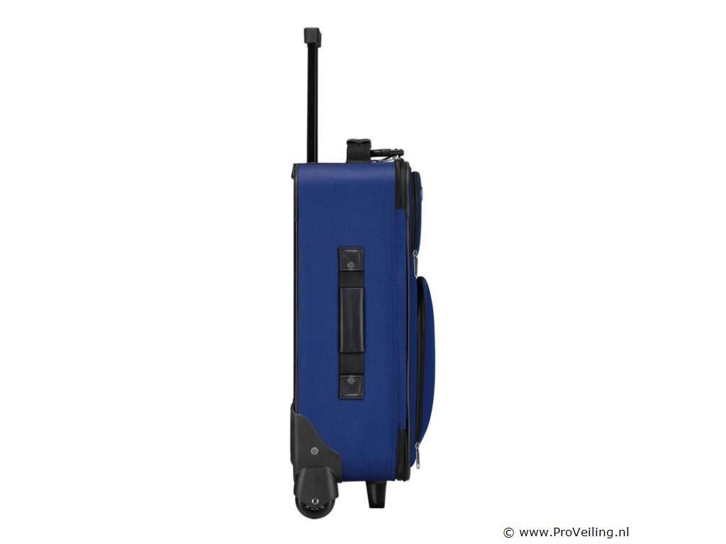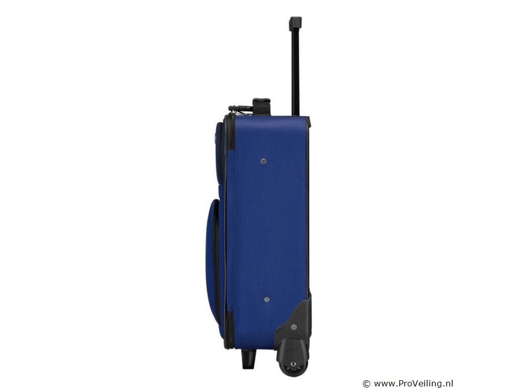 De 5-delige trolleykofferset Athens in de kleur blauw is de ideale basisuitrusting voor elke gelegenheid. Of het nu gaat om vakantie, stedentrip, weekendtrip of zakenreis, de set biedt de juiste koffer voor uw eisen. Naast 2 trolleys van verschillende afmetingen met lichtlopende wielen en aluminium telescopische stangen, bevat de set een praktische schoudertas voor handbagage en twee compacte en stijlvolle make-uptassen. De tassen en koffers zijn gemaakt van robuust polyester en hebben een waterafstotende coating. Voor meer veiligheid kunnen de hoofdvakken van de trolleys worden afgesloten (hangslot niet inbegrepen). Als je de set niet gebruikt, kun je de set in elkaar opbergen om ruimte te besparen en veilig op te bergen. Technische specificaties: Materiaal: aluminium, stof (Oxford polyester stof 600D) Materiaal wielen: rubber Kleur blauw Maximale belasting trolley L: 30 kg Maximale belasting trolley M: 15 kg Afmetingen (ongeveer): Trolley L buitenafmetingen: 64 x 44 x 21 cm Trolley L Inhoud: 60 liter Trolley M buitenafmetingen: 52 x 37 x 18 cm Trolley M Inhoud: 34 liter Buitenafmetingen schoudertas: 38 x 28 x 15 cm Capaciteit schoudertas: 16 liter Buitenafmetingen toilettas: 24 x 13 x 10 cm Capaciteit make-uptas: 3 liter Leveringsomvang: 1 × trolley maat L 1 × trolley maat M 1 × schoudertas 2 x make-uptas 1 × Instructie Kijk voor bestelling eerst goed naar de afmetingen!
