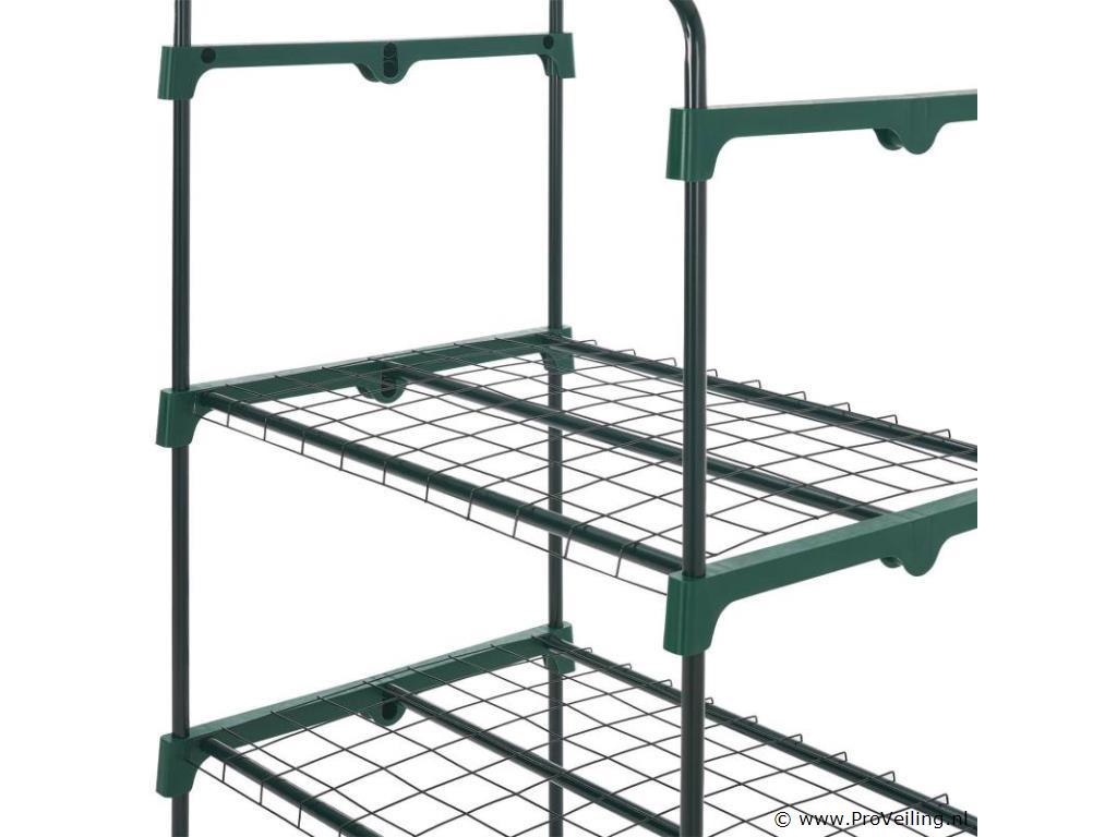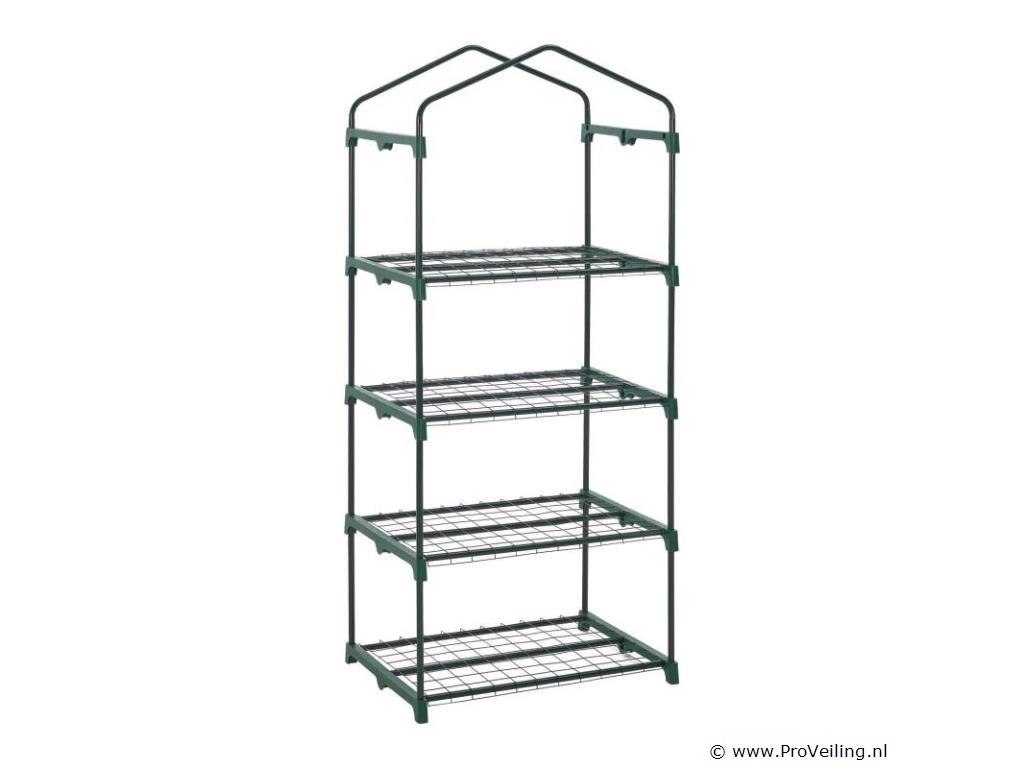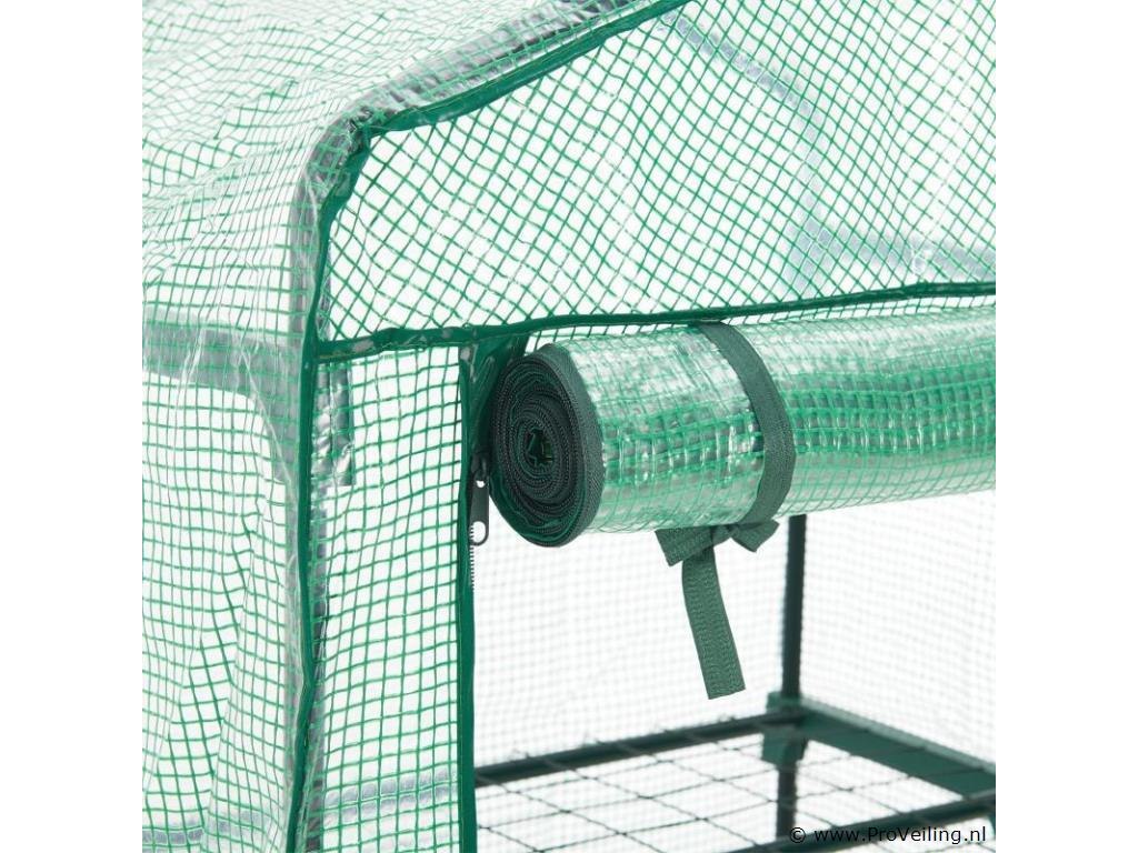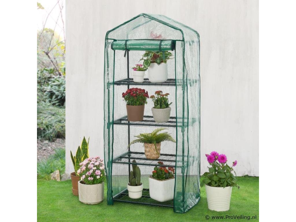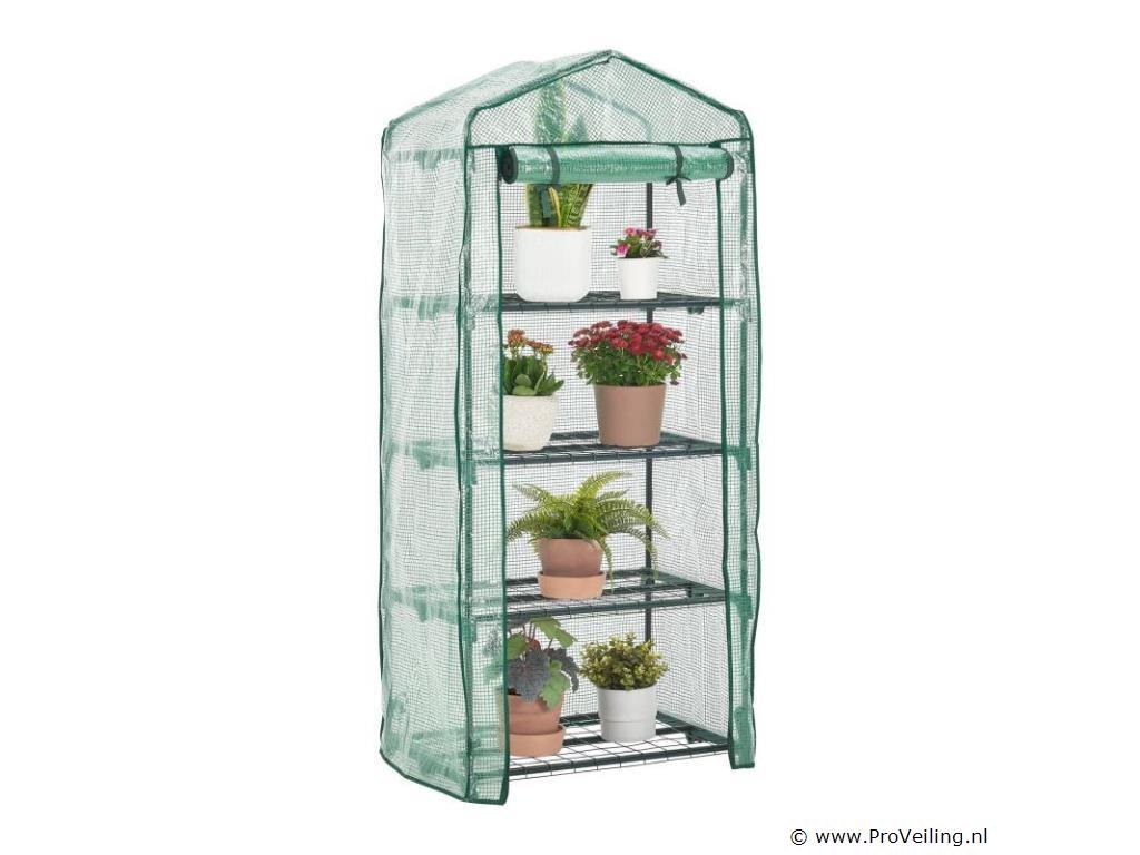 De foliekas 66x162x48 cm met PE-afdekking is bijzonder compact en licht, ideaal voor het kweken van groenten en fruit of voor het overwinteren van kleine planten. De robuuste beschermfolie van polyethyleen houdt ongedierte en negatieve weersinvloeden betrouwbaar buiten de deur. Tegelijkertijd laat het de ongehinderde penetratie van zonnestralen toe om een ??ideaal microklimaat te creëren voor de groei van de planten. Dankzij de kleine voetafdruk is de broeikas speciaal ontworpen voor op het balkon of terras. Het eenvoudige steeksysteem maakt een snelle en ongecompliceerde montage mogelijk. Technische specificaties: Materiaal frame: metaal (gepoedercoat), polypropyleen Materiaal folie: polyethyleen Kleur: helder, groen Draagvermogen: 40 kg per niveau Afmetingen (ongeveer): Afmeting (BxHxD): 66x162x48 cm Buizen: Ø 1,6 cm Leveringsomvang: 1 × broeikas 1 × afdekfolie 1 × montage-instructies