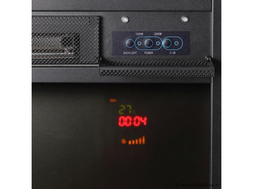 Er is nauwelijks iets beters dan gezellige uurtjes voor een open haard door te brengen terwijl het buiten grauw en koud is. Met de elektronische haard met verwarmingsfunctie en vlameffect doe je dit volledig risicoloos zonder echt vuur. Hij overtuigt niet alleen met zijn elegante haardlook, maar vooral met zijn uitgebreide functies. De geïntegreerde luchtverhitter zorgt moeiteloos voor aangenaam warme temperaturen, terwijl het vuureffect in verschillende lichtsterktes voor een gezellige sfeer zorgt. De individueel instelbare LED-verlichting rondt het totaalpakket af. Pure romantiek met één druk op de knop. Snel gemonteerd en aangesloten Het installeren van de sfeerhaard is supersimpel en eenvoudig. Met behulp van de gedetailleerde montage-instructies zet u het product in een handomdraai in elkaar. Plaats de haard vervolgens op de gewenste plek, bijvoorbeeld in de woonkamer. Steek de stekker in het stopcontact en u kunt aan de slag. Technische specificaties: Materiaal: MDF-hout, gehard glas, hars Kleur zwart Ingangsspanning: 220-240 V~, 50/60 Hz Vermogensniveaus: 1000 / 2000 watt LED-verlichting: 13 kleuren Temperaturen: 15 – 30 °C Vlamhelderheidsniveaus: 5 Vorm: driehoekig Afmetingen (ongeveer): Buitenafmetingen (BxDxH): 96x57x93 cm Kachel (BxDxH): 47x21x52 cm Leveringsomvang: 1 x LED-verlichting 1 x afstandsbediening 1 × Montage-instructies Let op dit artikel bestaat uit 2 dozen, het kan logistiek voorkomen dat het in meerdere dagen geleverd wordt.